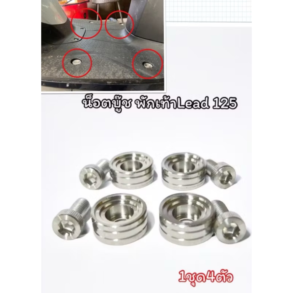 ชุดน็อตบู๊ซพักเท้าหัวก้นหอยเลส HONDA LEAD125 สแตน เลสแท้ 100% หลีด125 ชุดน้อตบู้ชพักเท้าหน้า