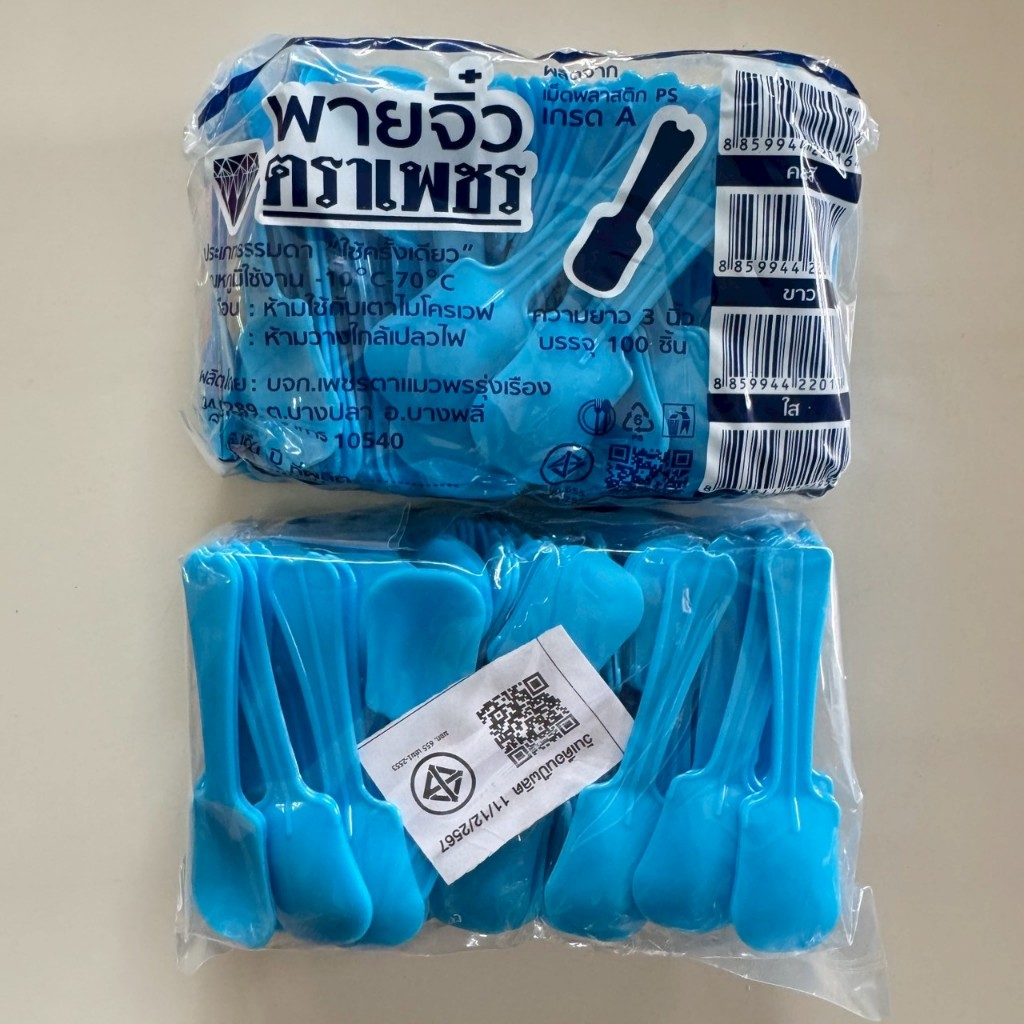 ช้อนพายจิ๋ว ช้อนพายพลาสติก คละสี ตราเพชร ยาว 7.5 cm บรรจุ 100 คัน/ห่อ