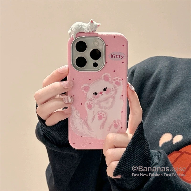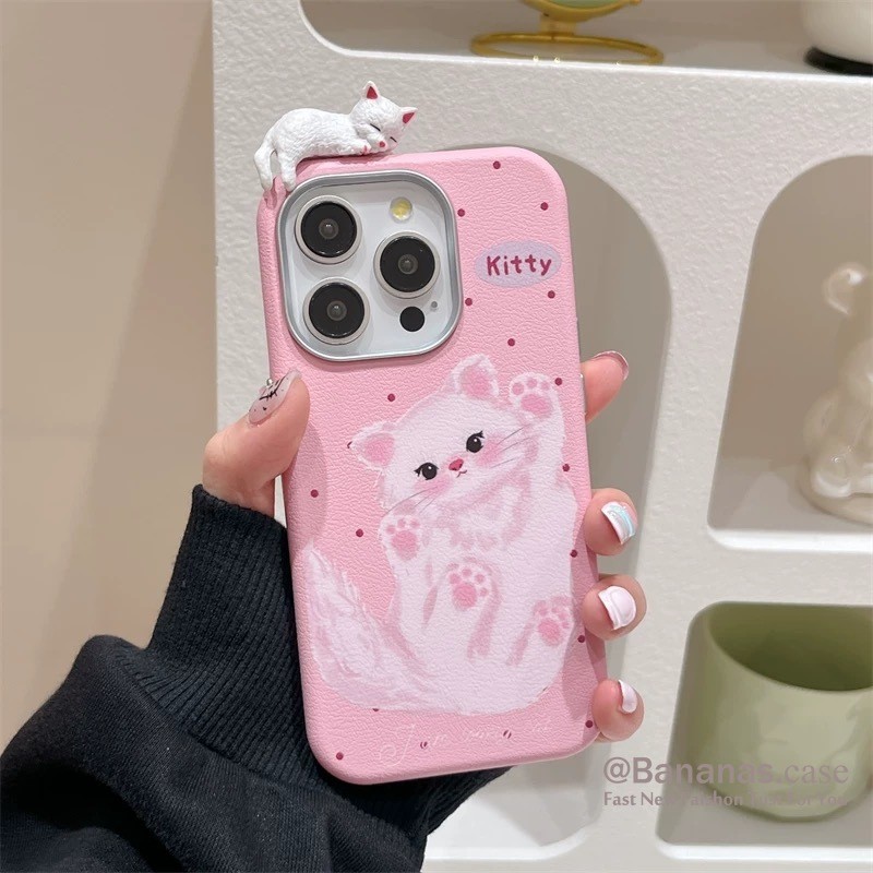 Iphone 16 15 14 13 12 11 Pro Max X Xr Xs Max เคสโทรศัพท์ Ins น่ารัก 3D DIY น่ารักสีชมพูเจ้าหญิงแมวนุ่มปกหลังหนัง
