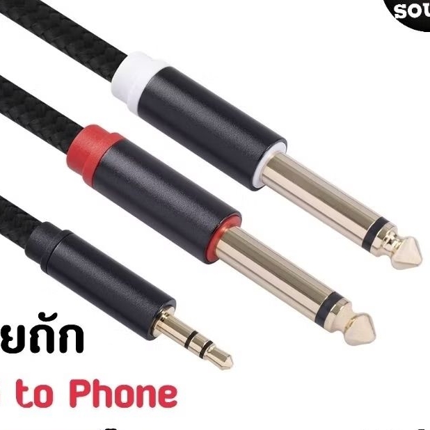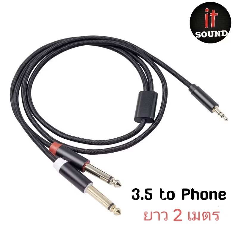 สายสัญญาณเสียง Stereo 1ออก2 (ยาว2เมตร )เสียบเข้ามิกซ์เซอร์ สายถักอย่างดี 3.5mm to 6.5mm (ฝ