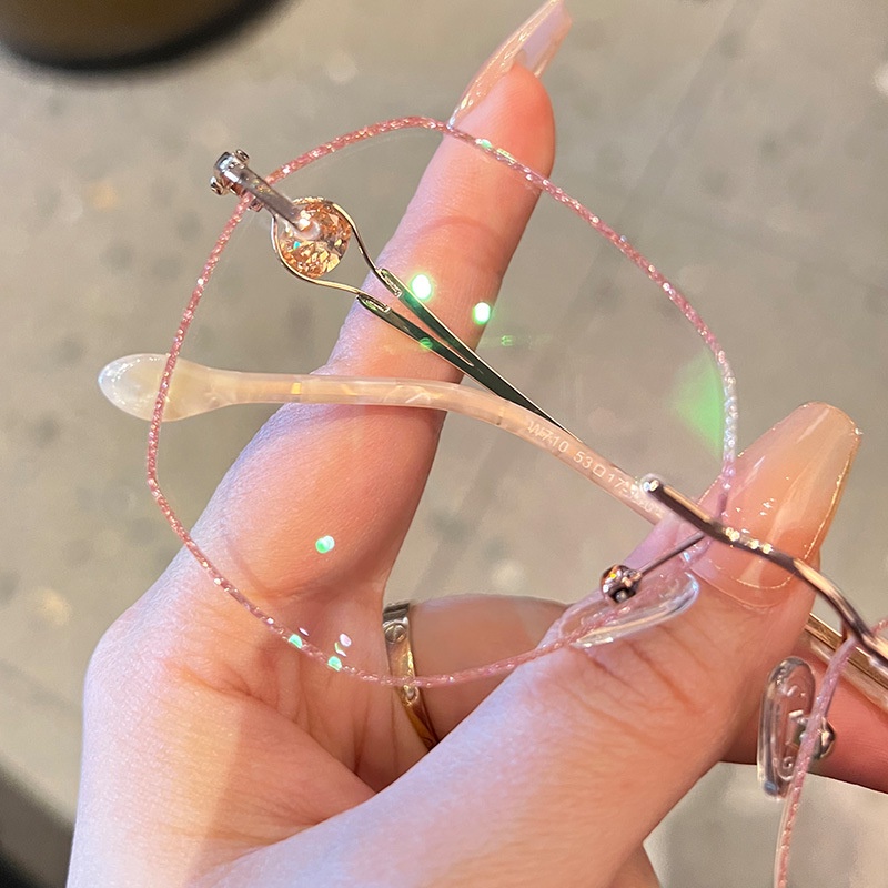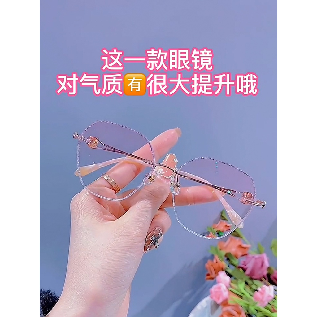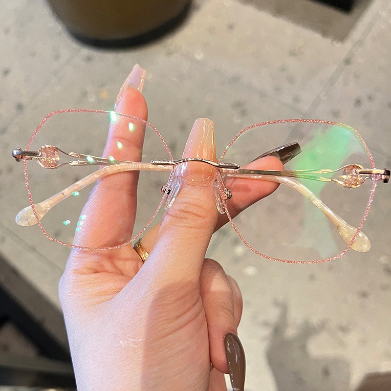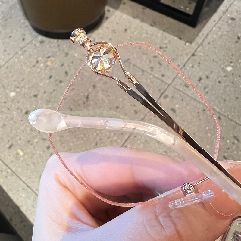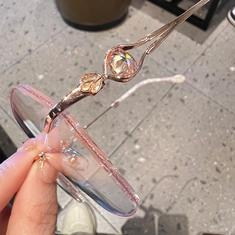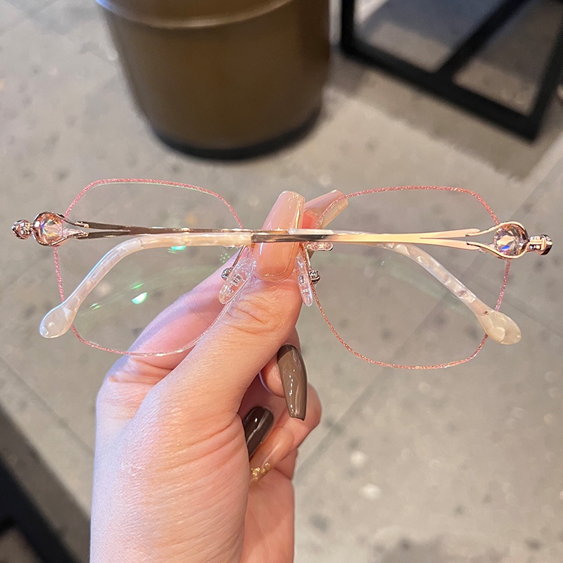 (+1.00° ถึง +3.50°) แว่นอ่านหนังสือ น้ำหนักเบาเป็นพิเศษ ไร้ขอบ แว่นตาแฟชั่นประดับเพชร เหมาะสำหรับผู้หญิง แว่นไร้ขอบเหลี่ยม ป้องกันแสงสีฟ้า ป้องกันรังสี