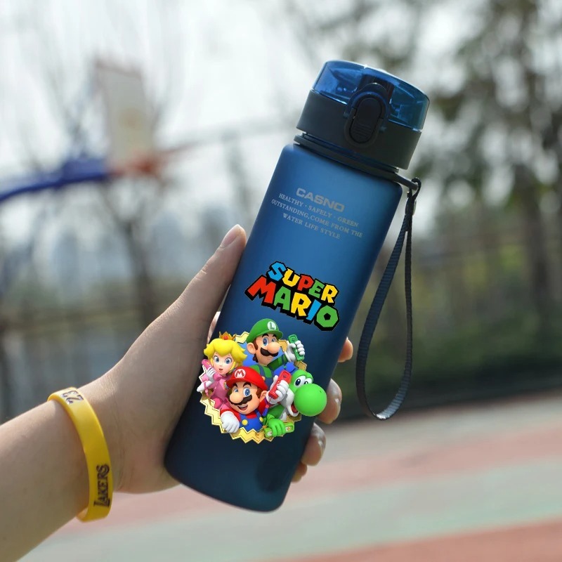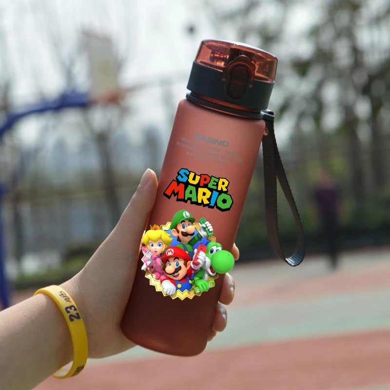 Super Mario ขวดน้ําพลาสติก ลายการ์ตูนน่ารัก ความจุขนาดใหญ่ แบบพกพา 560 มล. สําหรับเด็ก และผู้ใหญ่ เล่นกีฬากลางแจ้ง
