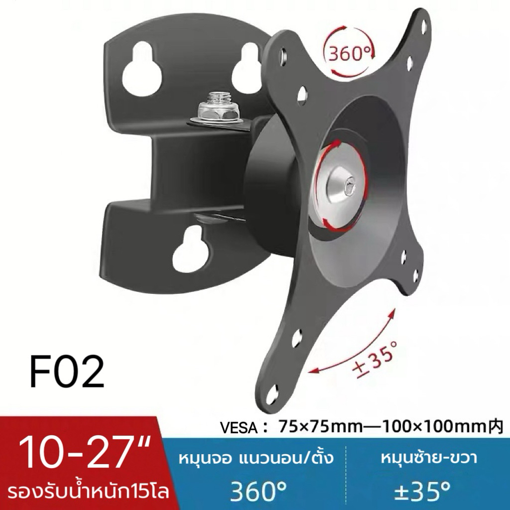 [F03]ขายึดจอคอมติดผนัง หมุน360องศา รองรับ17-24”ปรับก้มเงยซ้ายขวาได้