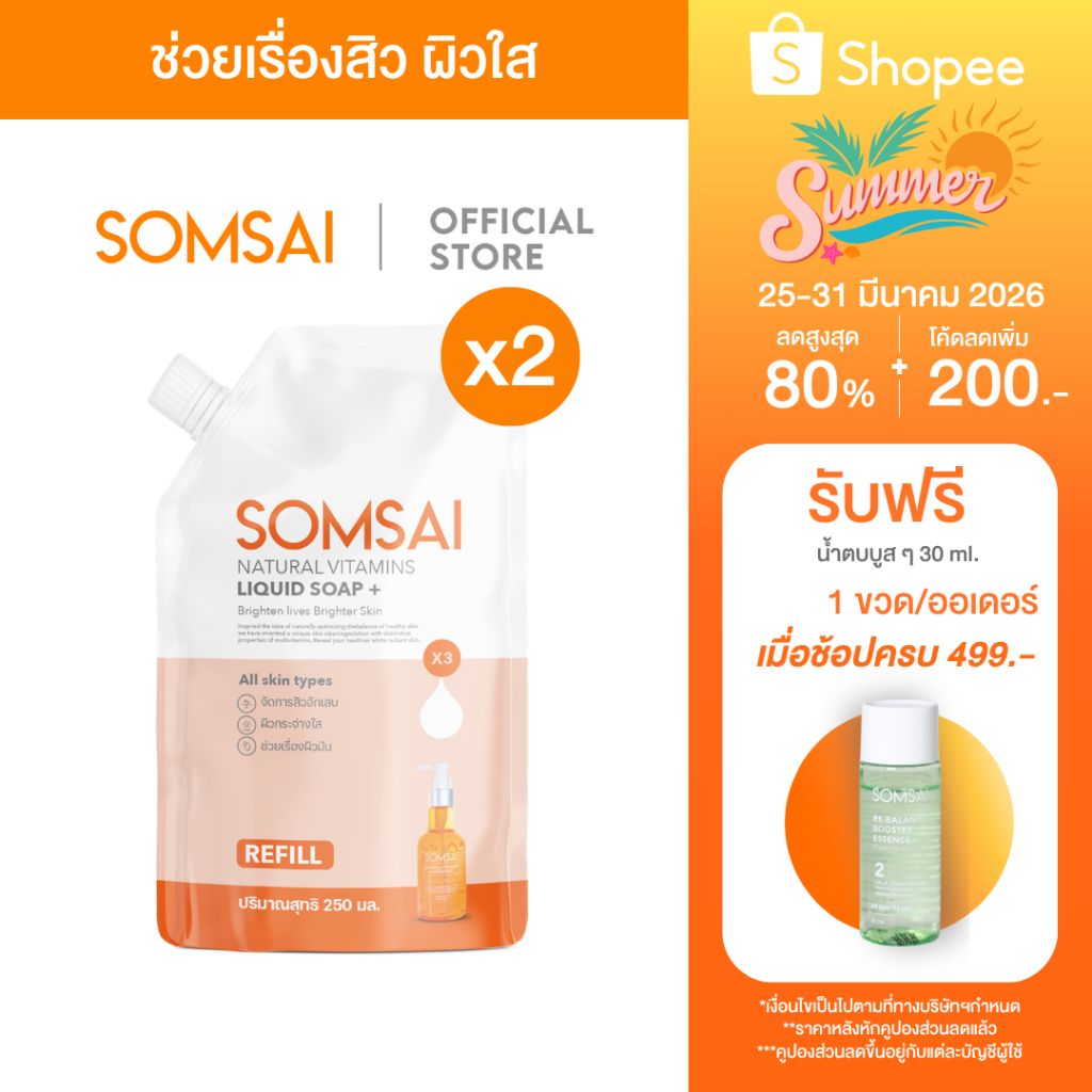 (ของแท้ 100%| แพ็ค 2) SOMSAI สบู่ล้างหน้าส้มใส หน้าใส ไร้สิว ผิวติดสาร อ่อนโยนแม้ผิวแพ้ง่าย