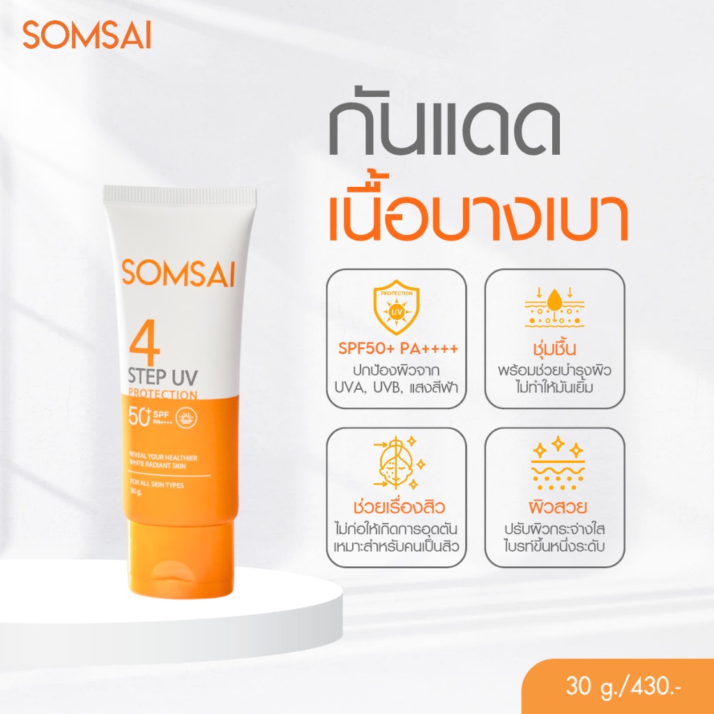 [ของแท้ 100%] SOMSAI กันแดดส้มใส สูตรใหม่ 30g กันแดดคนเป็นสิว ปกป้องรังสี UVA,UVB บางเบา ไม่อุดตัน