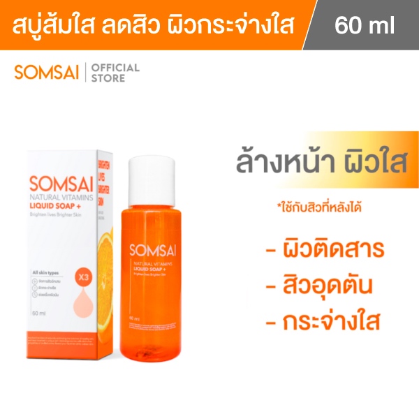 (ของแท้ 100%) SOMSAI สบู่ส้มใสขวดพกพา 60ml หน้าใส ไร้สิว ปราศจากผิวติดสาร อ่อนโยนแม้ผิวแพ้ง่าย
