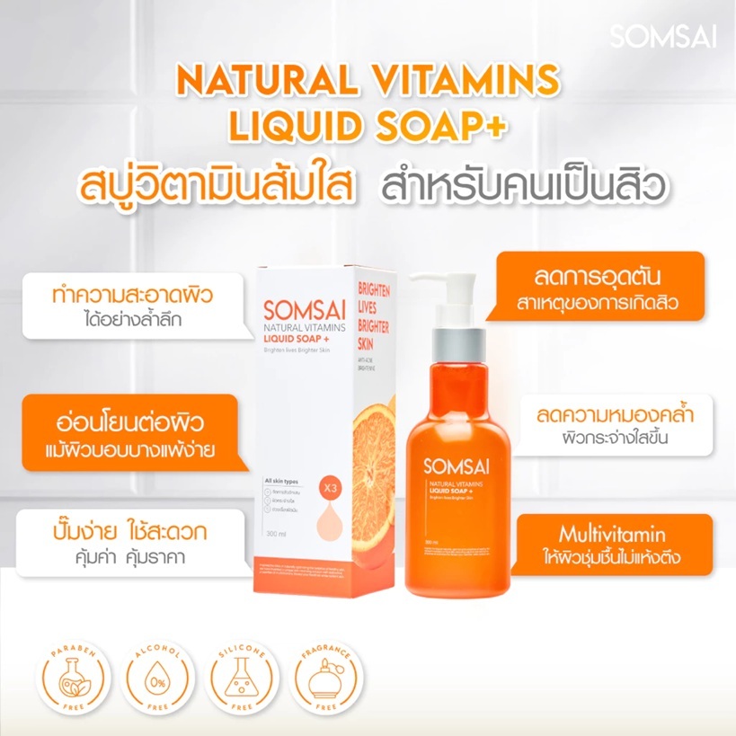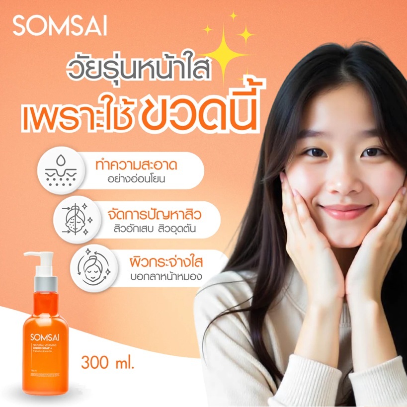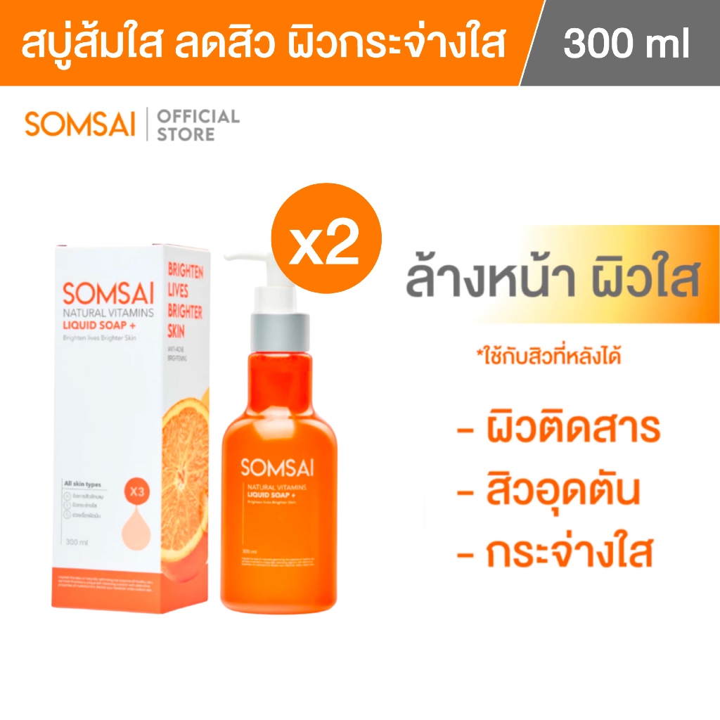 (ของแท้ 100%| แพ็ค 2) SOMSAI สบู่ล้างหน้าส้มใส 300ml หน้าใส ไร้สิว ปราศจากผิวติดสาร อ่อนโยนต่อผิว