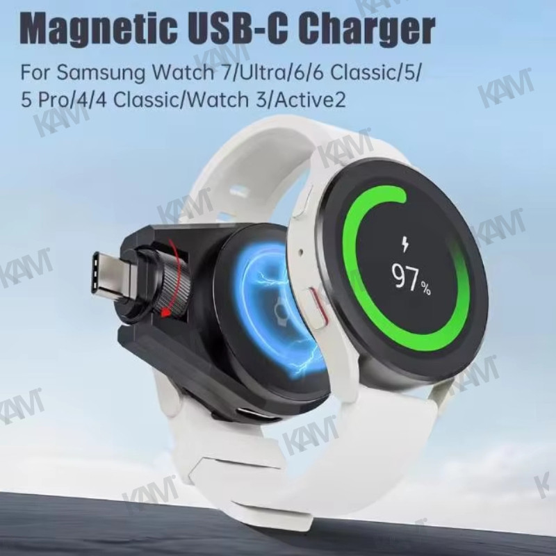 [Kam] สายชาร์จแม่เหล็กแบบพกพา Type C 2-in-1 สำหรับ Samsung Galaxy Watch 7 Ultra สายชาร์จไร้สาย USB เร็วสำหรับ Galaxy Watch 6 Watch5 Pro Ultra