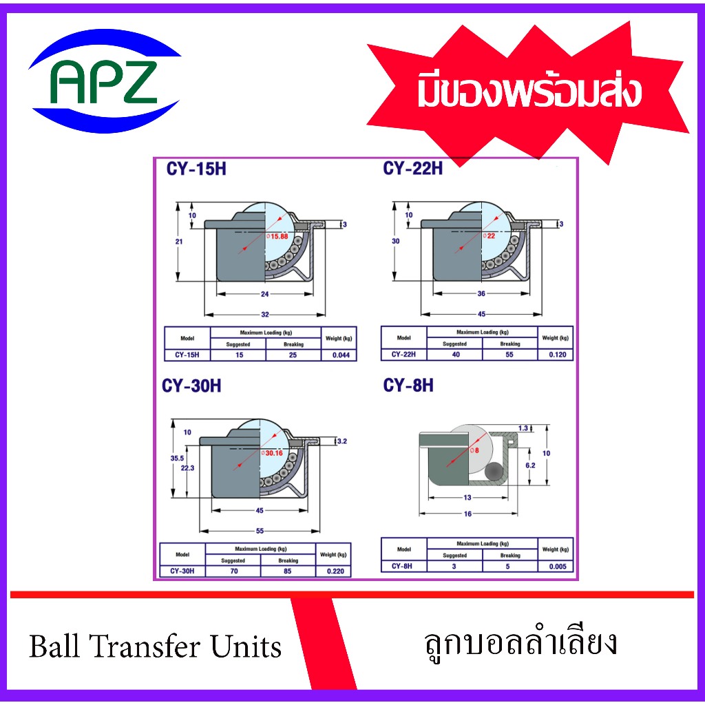 Ball Transfer ตลับลูกบอลลำเลียง CY8 CY15 CY22 CY30 H ลูกบอลลำเลียง บอลลูกกลิ้งเหล็ก CY-8H CY-15H CY-22H CY-30H โดย Apz