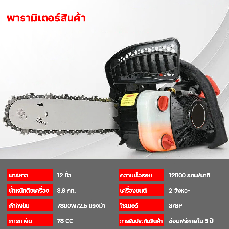 เลื่อยมือเดียว เลื่อยโซ่ยนต์ 12นิ้ว เลื่อยยนต์ เลื่อยไฟฟ้า เครื่องเลื่อยไม้ เครื่องยนต์ 2 จังหวะ เลื่อยยนต์ตัดไม้ เลื่อย