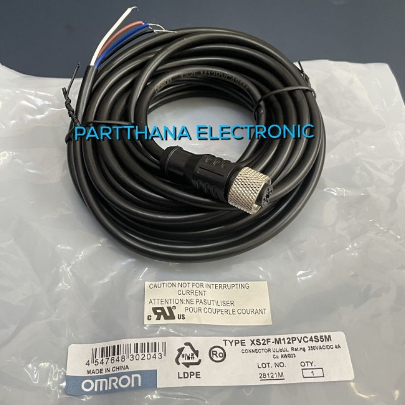 XS2F-M12PVC4S5M สายพร้อมหัวคอนเน็คเตอร์ สำหรับเซ็นเซอร์ เกลียว M12 สายยาว 5 เมตร