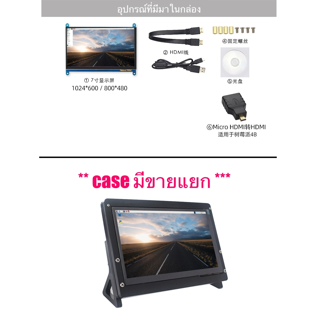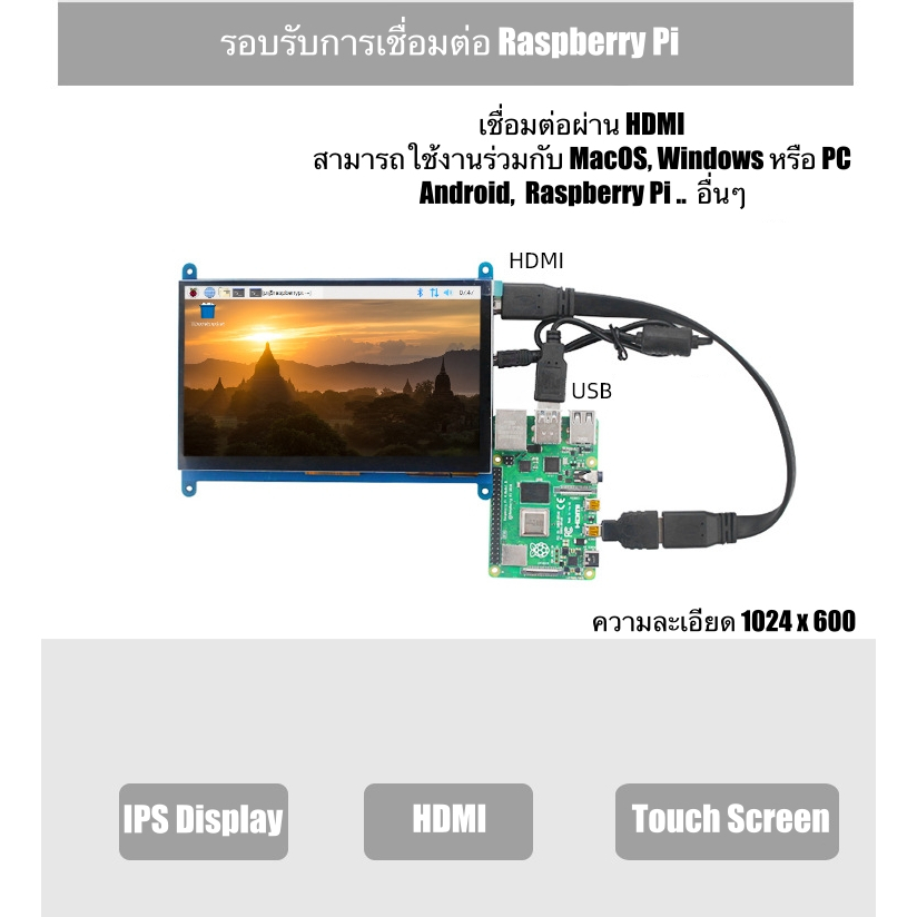 จอแสดงผล 7นิ้ว IPS เชื่อมต่อ HDMI ความละเอียด HD 1024x600 สำหรับ Raspberry Pi จอบิตคอยน์ จอ MiniPC รองรับ touch screen