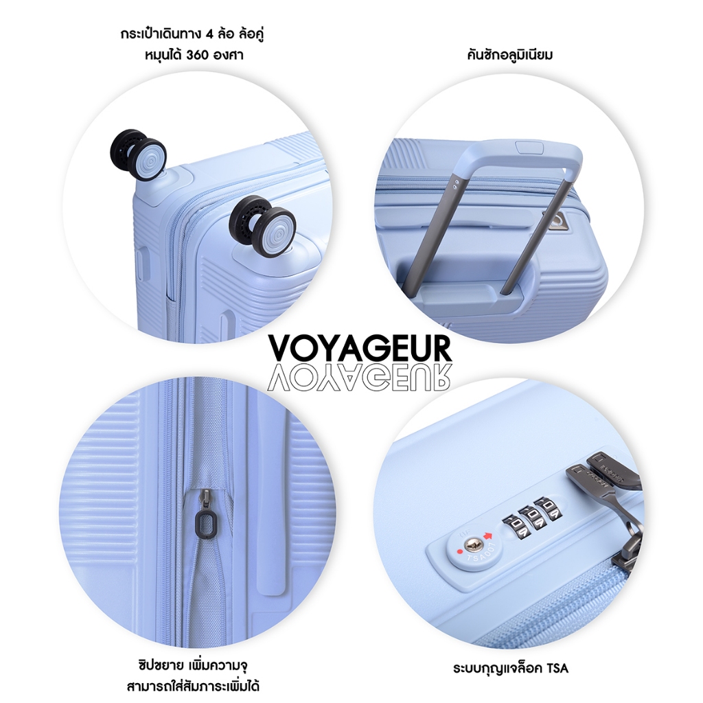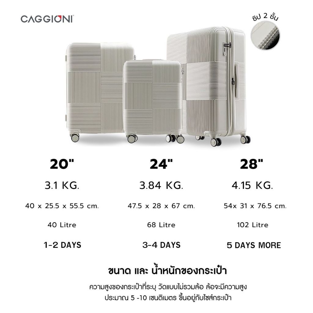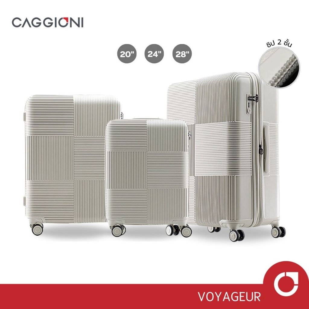 CAGGIONI กระเป๋าเดินทาง กระเป๋าล้อลาก รุ่นโวยาจเกอร์ 15082 น้ำหนักเบา TSA Lock [20/ 24/ 28 นิ้ว] - สีขาวควันบุหรี