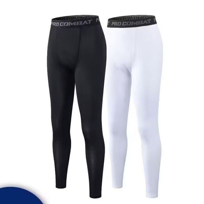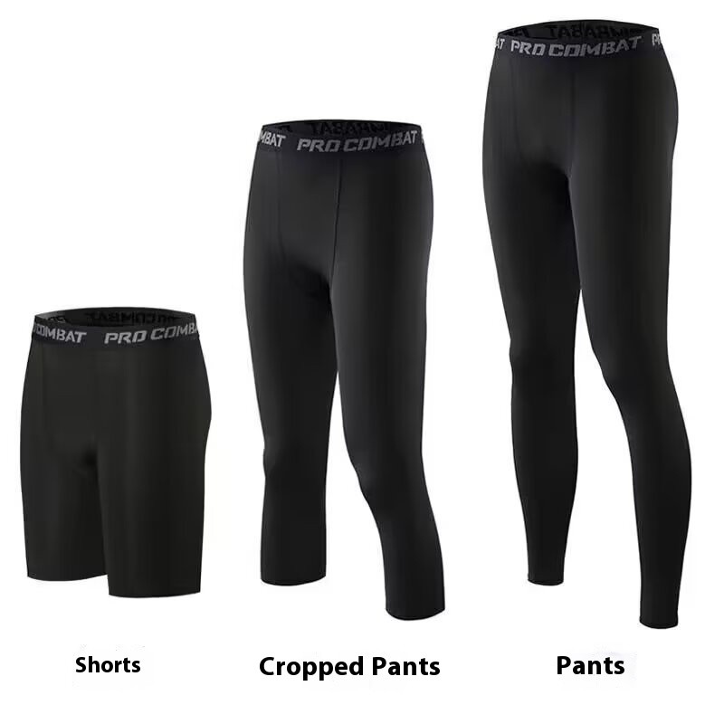 Ershenshi กางเกงรัดรูปกีฬาผู้ชาย Cropped สีดําและสีขาว S-5XL