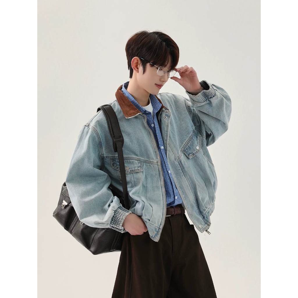 Eershenshi สไตล์อเมริกัน Retro แจ็คเก็ตยีนส์สั้นผู้ชายและผู้หญิงหลวมอินเทรนด์ All-Match Overalls