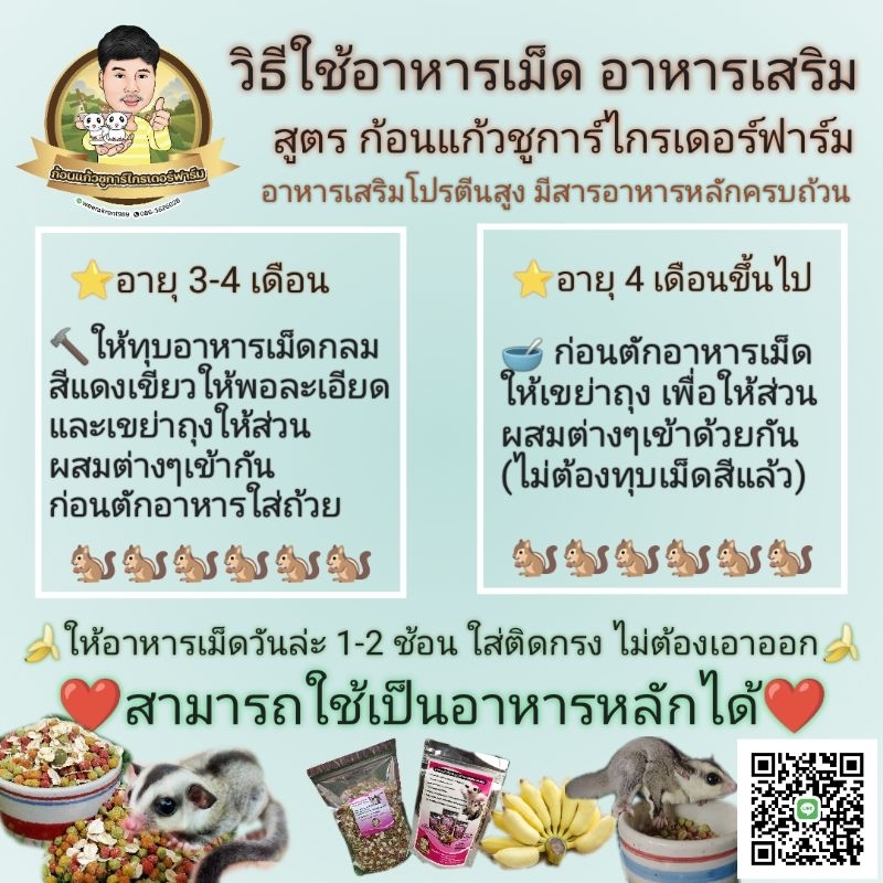 อาหารเม็ดชูก้าร์และกระรอก (ขนาด 1,000กรัม)