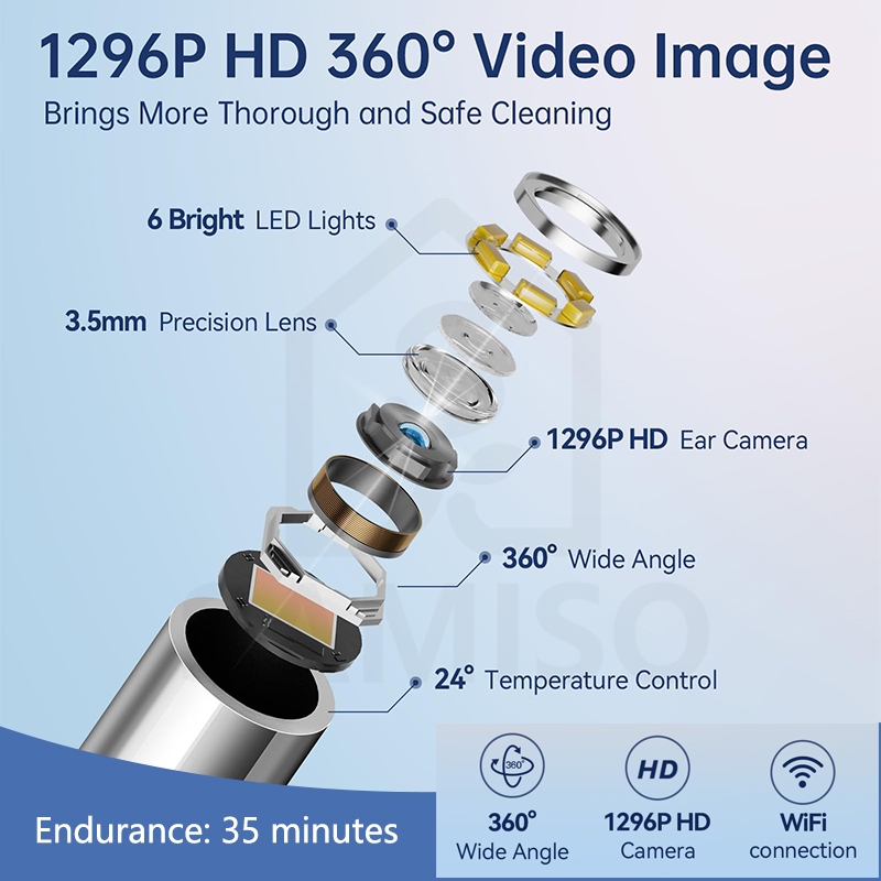 เครื่องทําความสะอาดหูภาพอัจฉริยะ 18 in 1, เครื่องมือกําจัดขี้หู, เครื่องทําความสะอาดหูพร้อมกล้อง 1080P สําหรับ iOS และ Android