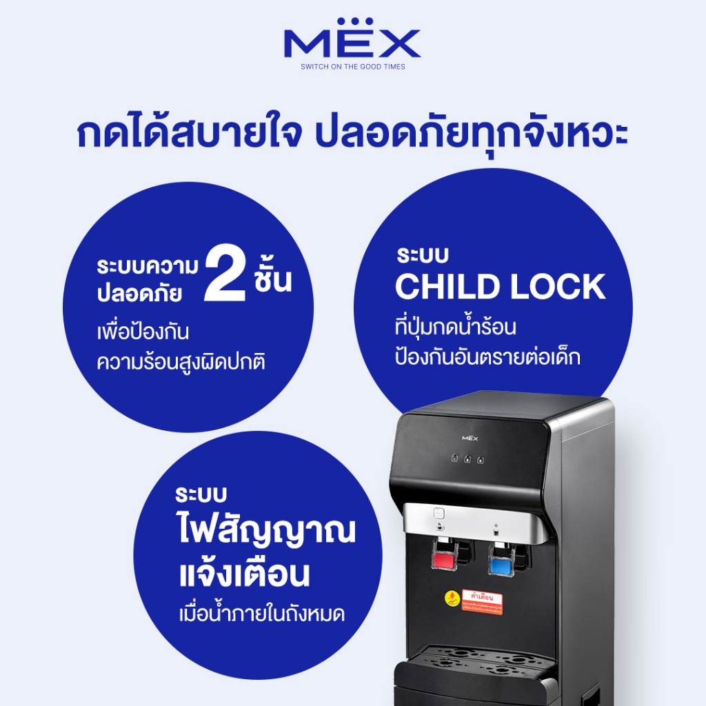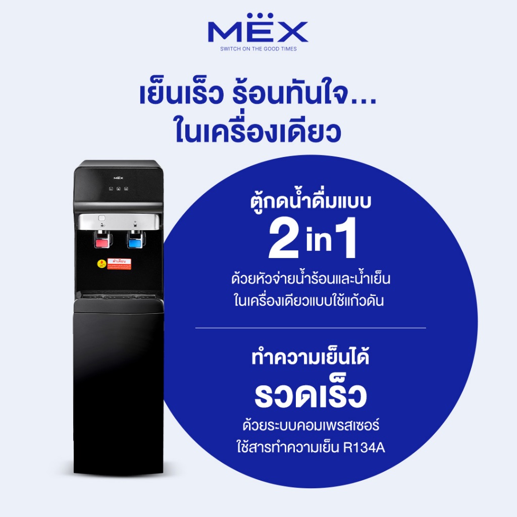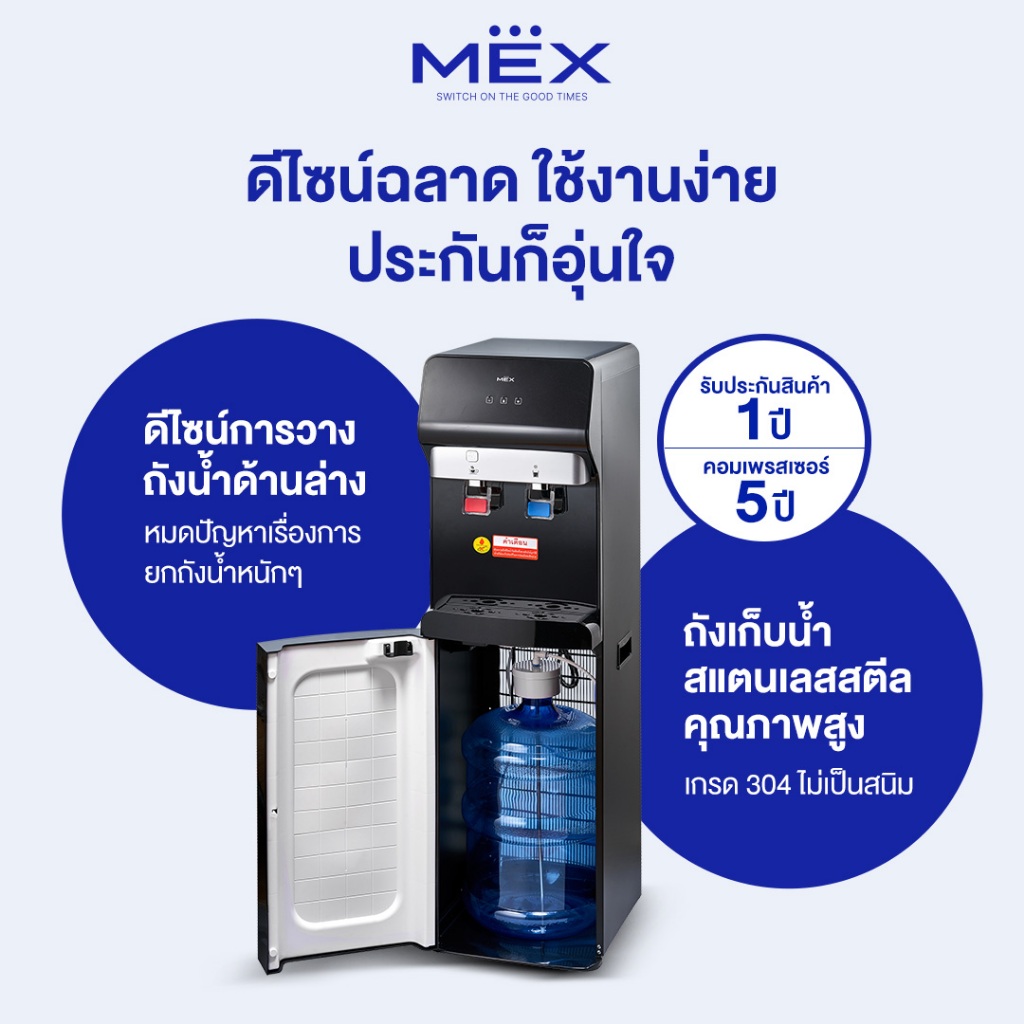 MEX ตู้กดน้ำดื่ม รุ่น ME530-B ระบบ 2 หัวจ่าย 2 ฟังก์ชั่น (น้ำร้อน, น้ำเย็น) : แบบวางถังด้านล่าง (ไม่แถมถังน้ำ)