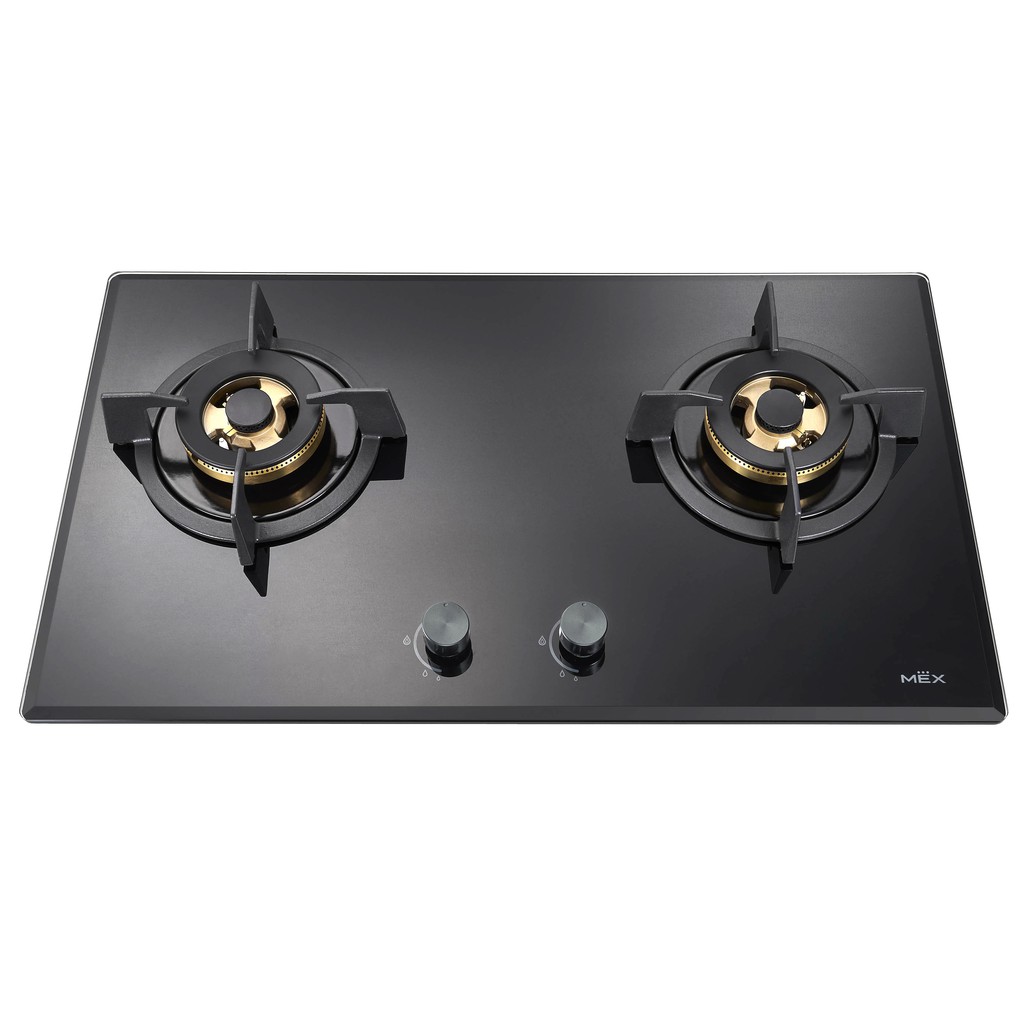 MEX รุ่น V7825C เตาแก๊สฐานกระจก 2 หัวเตาทองเหลือง ขนาด 78 ซม.