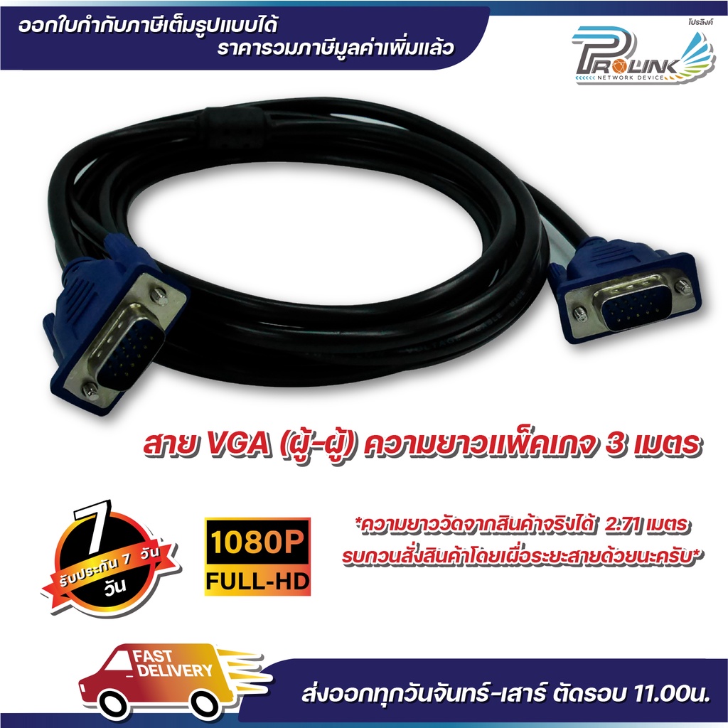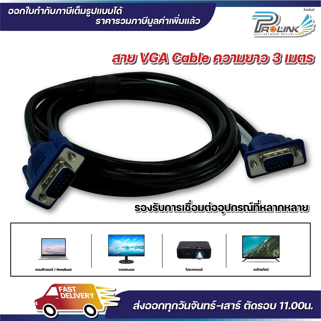 ส่งจากไทย สาย vga คุณภาพดี สีดำ สีขาว ยาว 3m สายต่อคอมพิวเตอร์ สายต่อจอภาพ โปรเจ็คเตอร์ จากร้าน prolinkshop