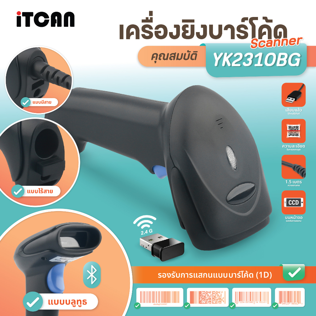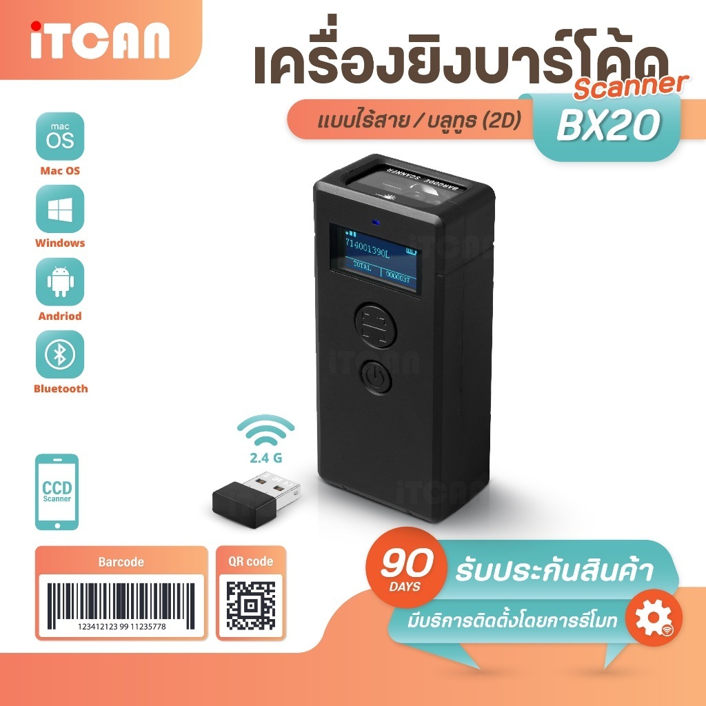 เครื่องยิงบาร์โค้ด สแกนเนอร์ บลูธูท บาร์โค้ด Barcode Scanner iTCAN 1D 2D QRCode เครื่องสแกนสินค้า