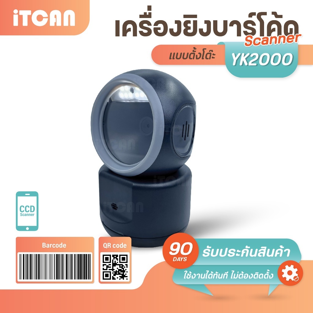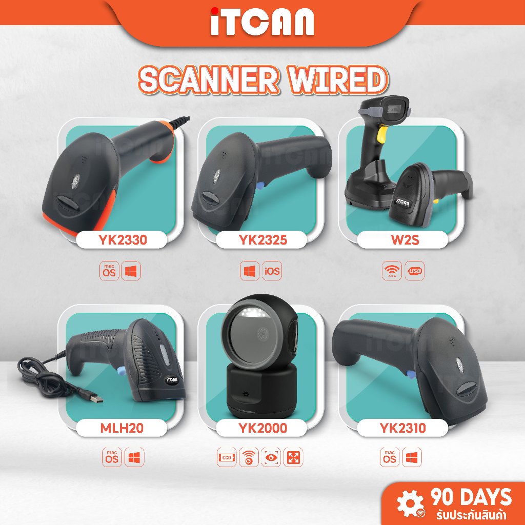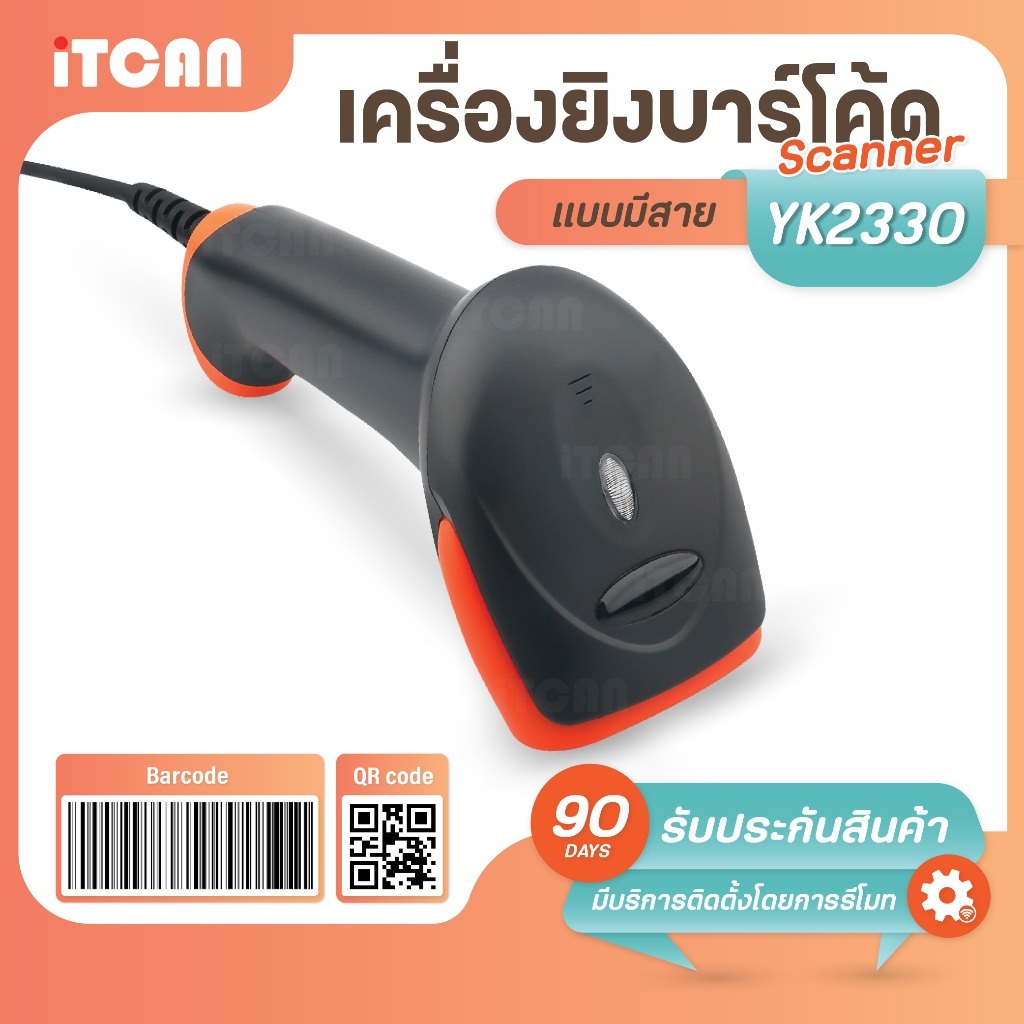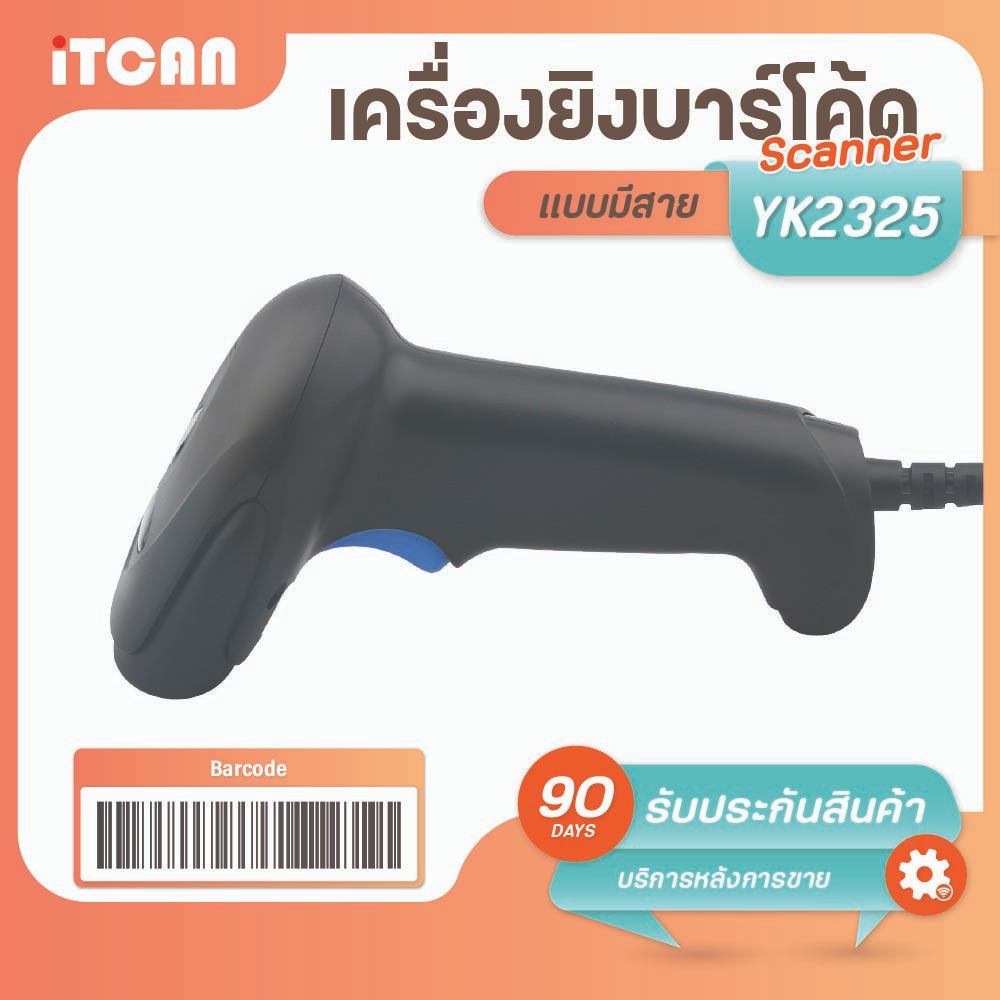 เครื่องยิงบาร์โค้ด สแกนเนอร์ มีสาย บาร์โค้ด Barcode Scanner iTCAN 1D 2D QRCode เครื่องสแกนสินค้า