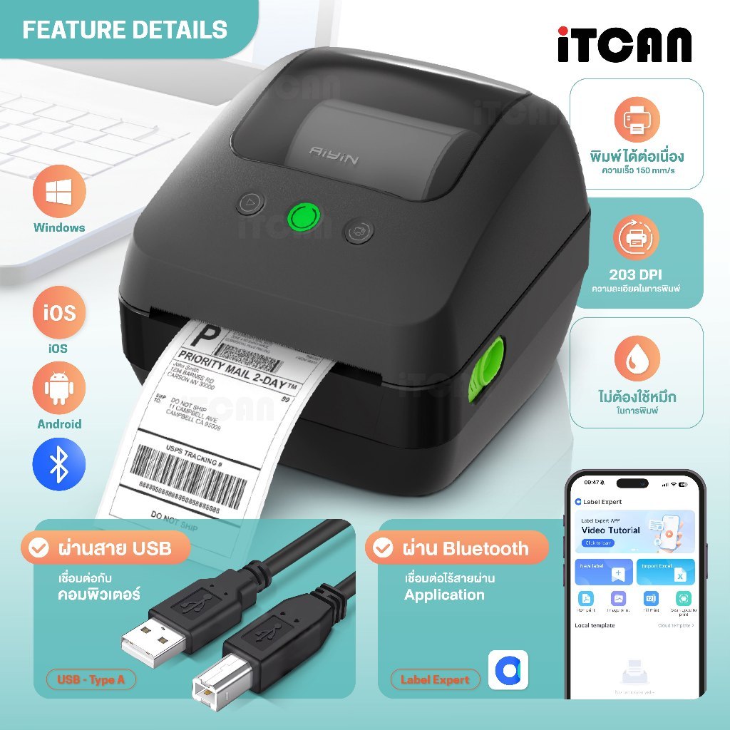 เครื่องปริ้นบลูทูธ GP-2408 เครื่องปริ้นความร้อน ใบปะหน้าสติกเกอร์ ไม่ใช้หมึก เครื่องพิมพ์ความร้อน
