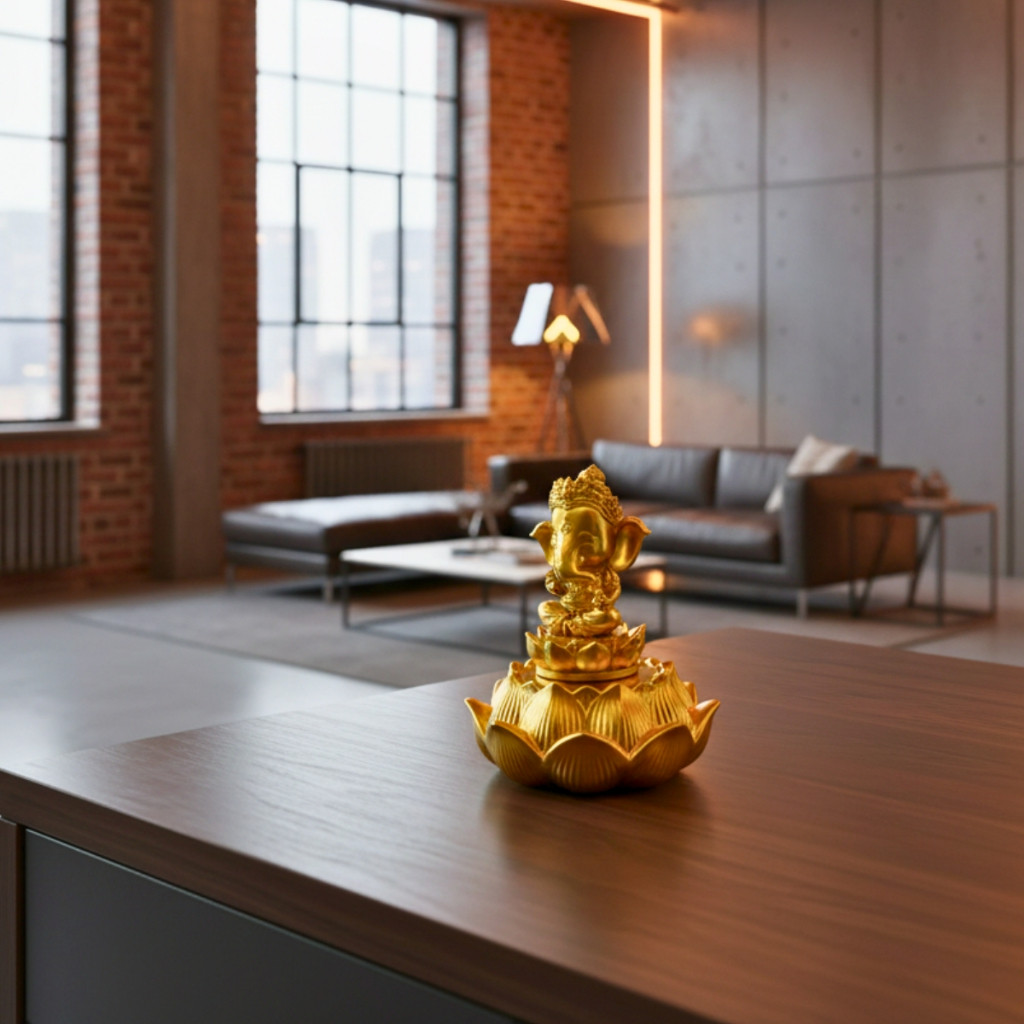 ฐานวางพระ/องค์เทพ RS-TB02 ฐานบัวทองมงคล ท็อปกระจก เสริมบารมีสูง สติปัญญา และโชคลาภ