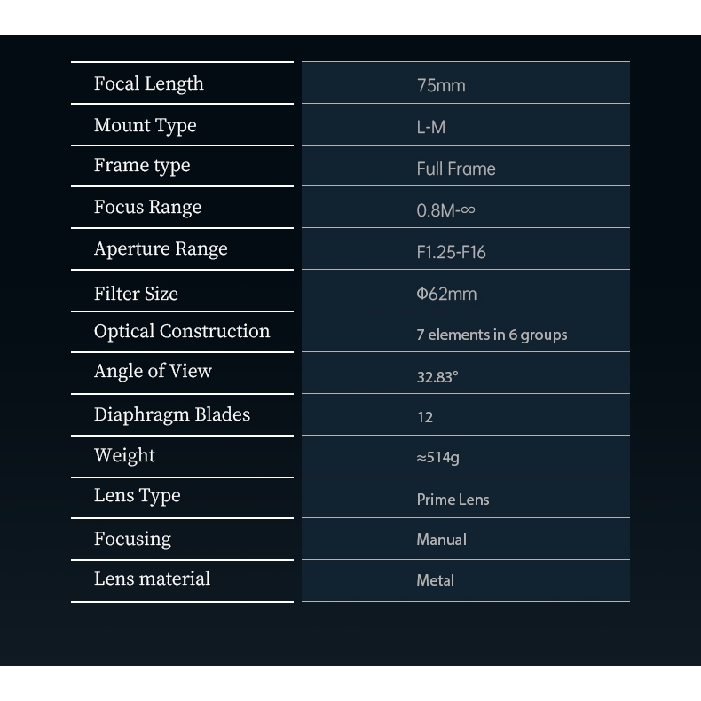 7artisans 75mm F1.25 II เลนส์ภาพ Leica M-mount เลนส์กล้องโฟกัสคงที่สําหรับภาพการถ่ายภาพการถ่ายภาพอุปกรณ์เสริม