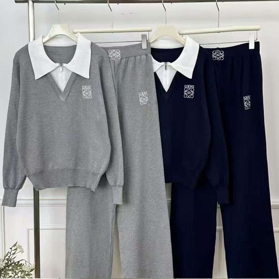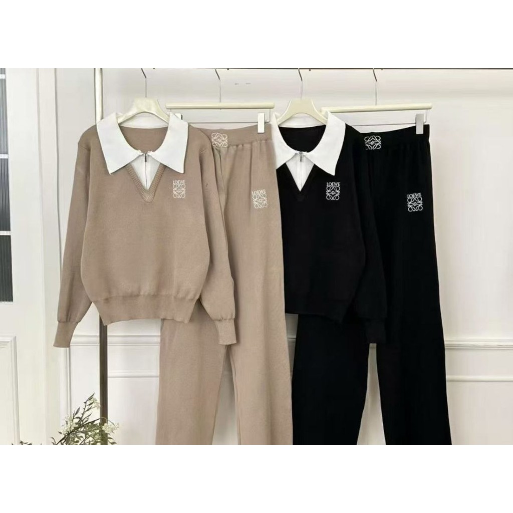 ชุดสองท่อนสีเข้ากันสำหรับฤดูใบไม้ร่วงและหนาว เสื้อโค้ตพร้อมกางเกงขากว้าง สวมใส่สบาย