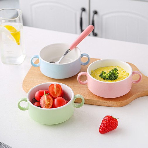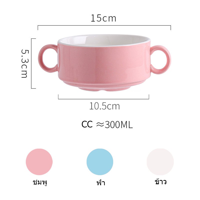 เข้าไมโครเวฟได้ มีสองหูชาม ถ้วยซุป เซรามิก มี5สีไห้เลือก