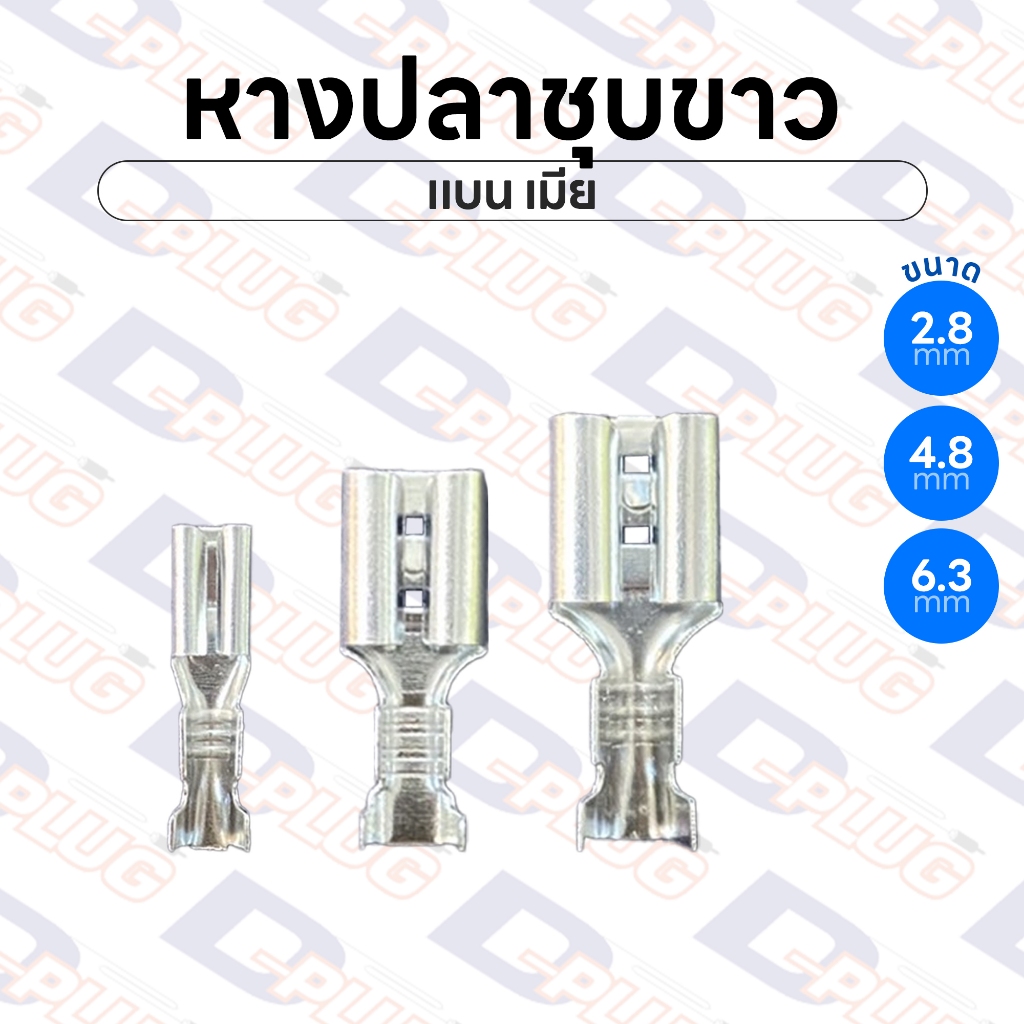 หางปลาชุบขาว เปลือย แบน เมีย ทองเห ลืองแท้ชุบเงิน ขนาด 2.8 / 4.8 / 6.3 มม. Silver Plated Crimp Terminals | แพ็ค 10 ตัว