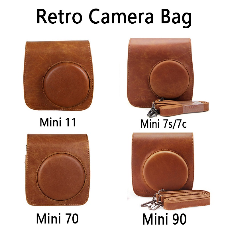 Retro สีน้ําตาลกระเป๋ากล้องสําหรับ Instax Mini 11/7s/7c/70/90 กล้อง Protector Shell Mini 90 กรณีสลิงกระเป๋า