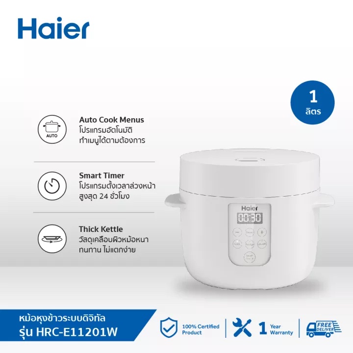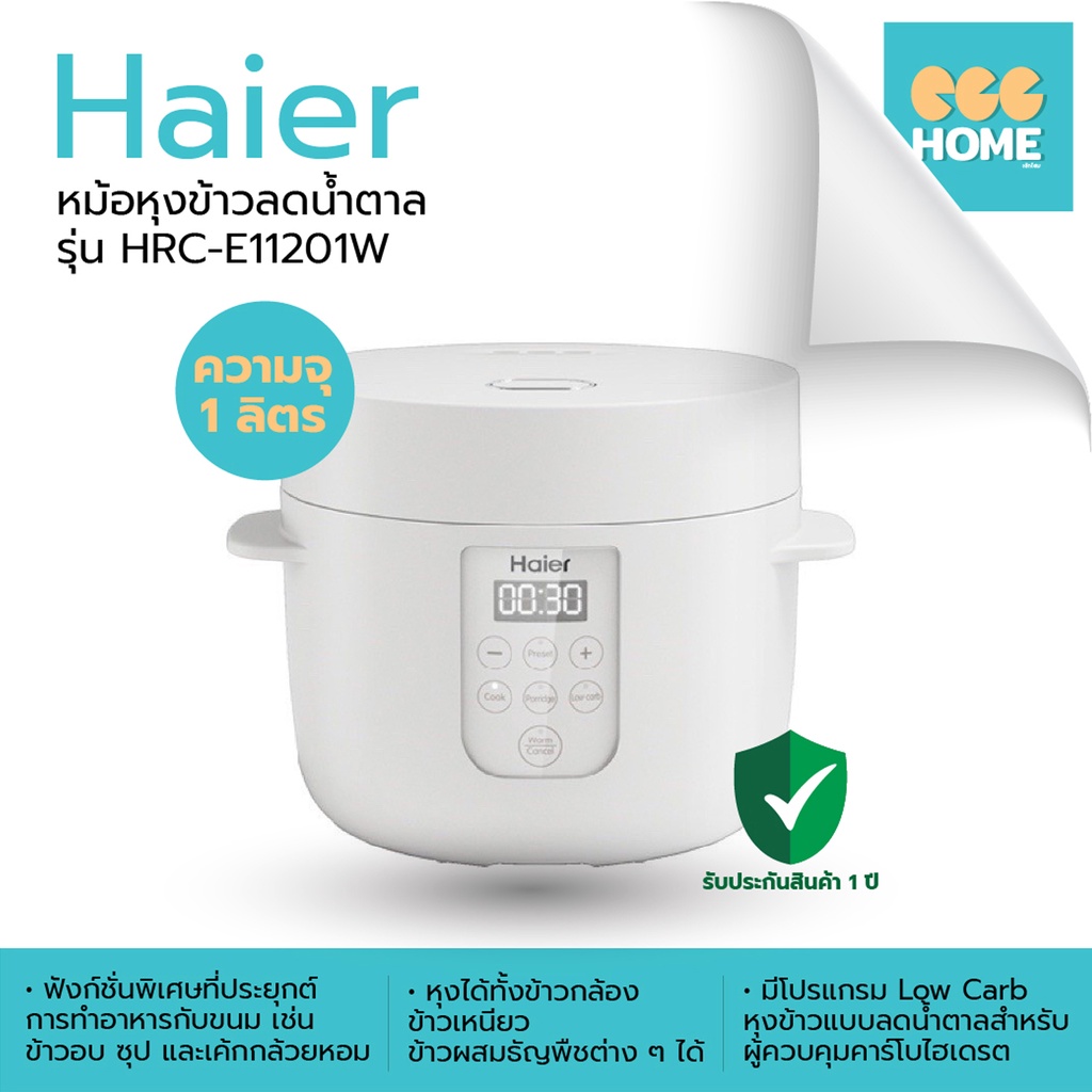 HAIER หม้อหุงข้าวลดน้ำตาล (500 วัตต์, 1 ลิตร, สีขาว) รุ่น HRC-E11201W รับประกัน 1 ปี