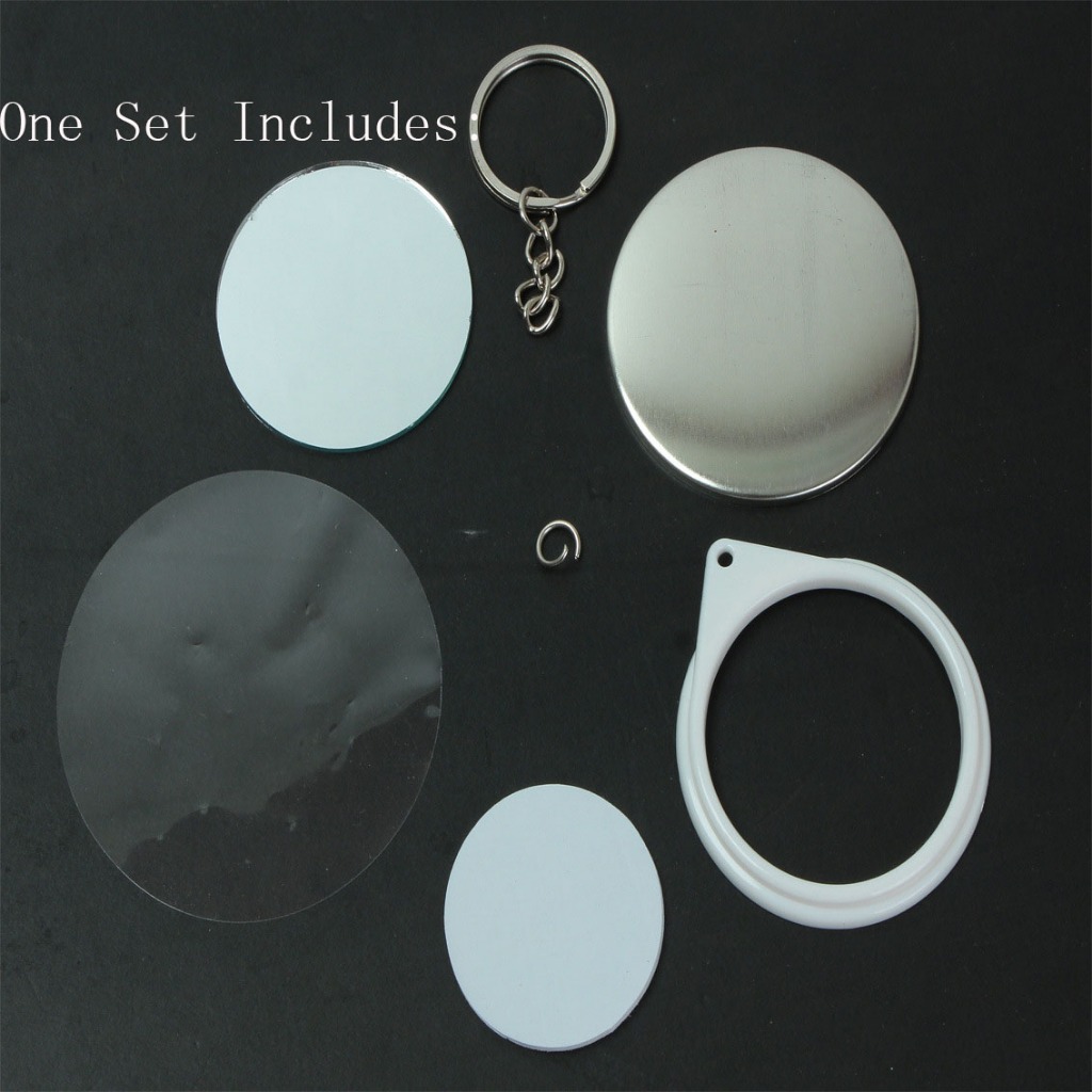 (ไม่มีรูไม่มีรู ,ไม่สามารถทําได้ ) 44 มม. 58 มม. ป้ายปุ่มกระจก พวงกุญแจ ป้ายปุ่ม วัสดุเปล่า ชิ้นส่วนป้ายปุ่ม 100 ชิ้น/PKG