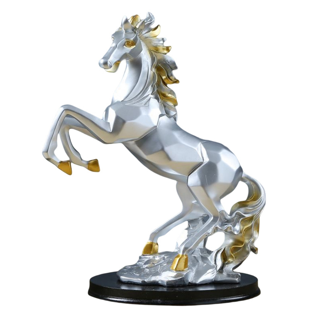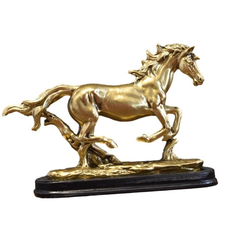 Horse Statuette Sculpture Collectable Artwork for Home Desk Decor โมเดลม้ายกคู่หน้าสีทอง