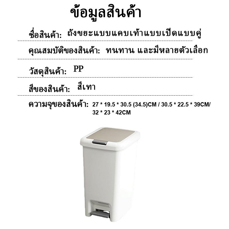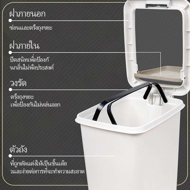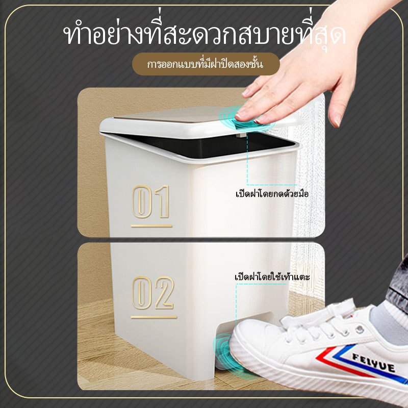 ถังขยะ แบบเปิดมือ-เปิดเท้า ถังขยะใหญ่ ถังขยะมินิมอลพลาสติกทรงสี่เหลี่ยม ถังขยะฝาปิด ถังขยะแข็งแรงทนทาน