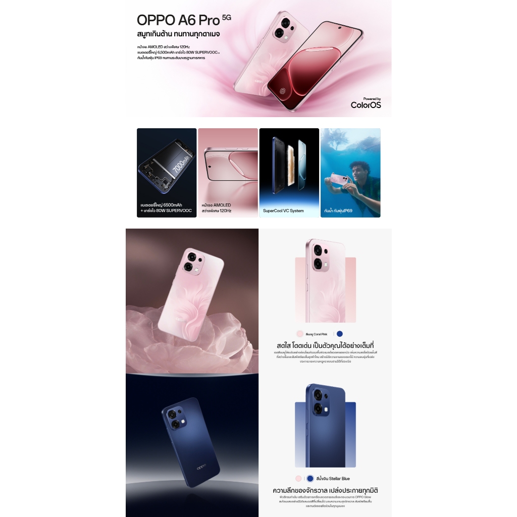 [New]OPPO A6 Pro 5G (8+256G) โทรศัพท์มือถือทนทาน กันน้ำ/กันฝุ่น IP69กล้อง 50 MPชาร์จไว 80Wแบตเตอรี่ขนาดใหญ่ 6500 mAh