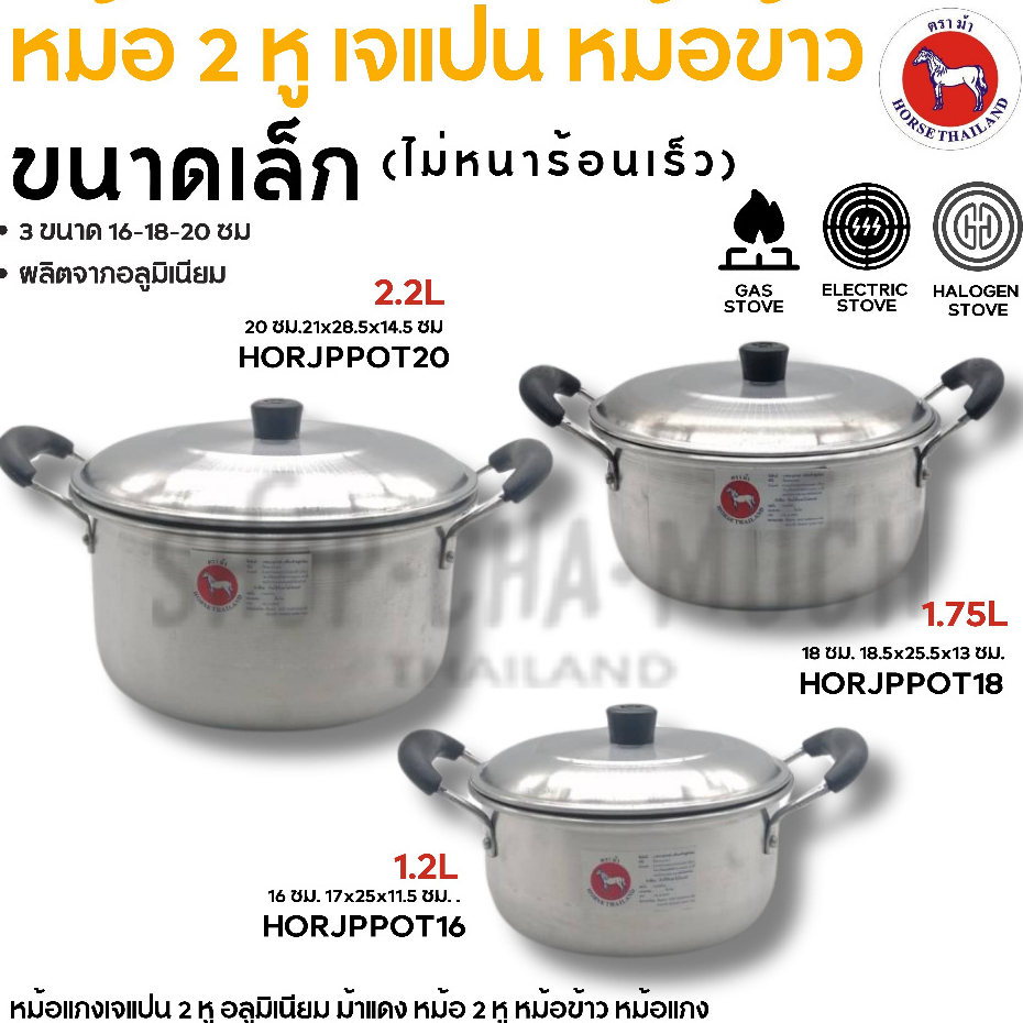 หม้อแกง เจแปน อลูมิเนียม ตราม้า ม้าแดง เบอร์ 16/18/20/22/24/26/28/30 - 1 ใบ โปรดเลือก