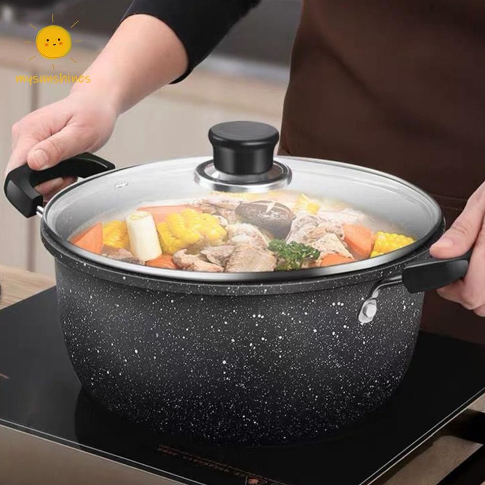 ☀MS หม้อซุป Nonstick Stock หม้อพร้อมที่จับหม้อตุ๋นลึก Fast Heat Iron หม้อปรุงอาหาร Induction หม้อซุปสําหรับ Home Kitchen
