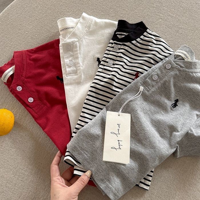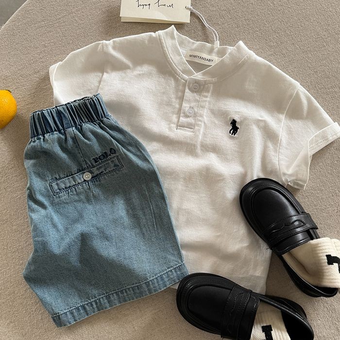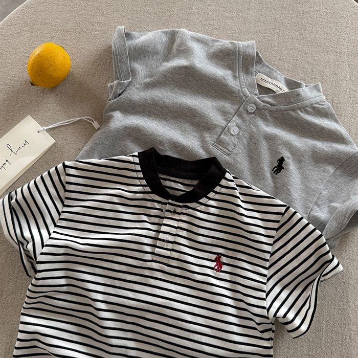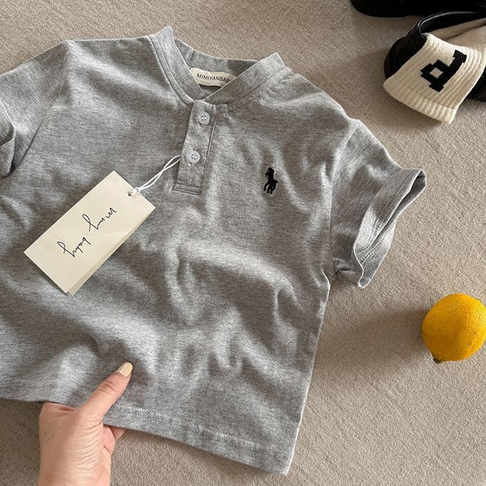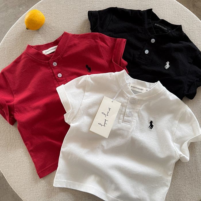 2025 เสื้อเด็กผู้ชายใหม่ต่างประเทศเกาหลีเย็บปักถักร้อยแบรนด์อินเทรนด์ลายอเนกประสงค์แขนสั้นด้านบน