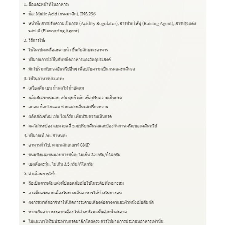 Malic Acid 100 g กรดมาลิค /กรดแอปเปิ้ล