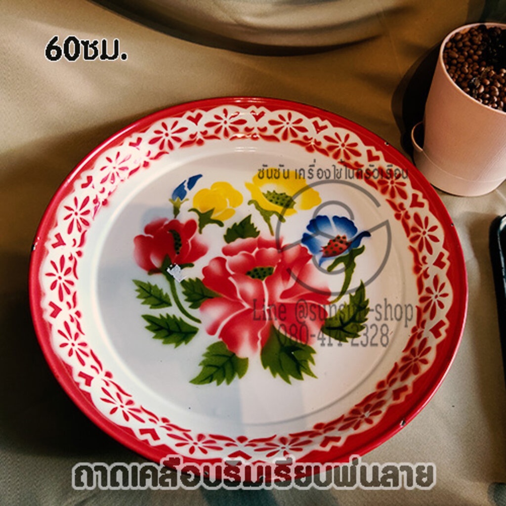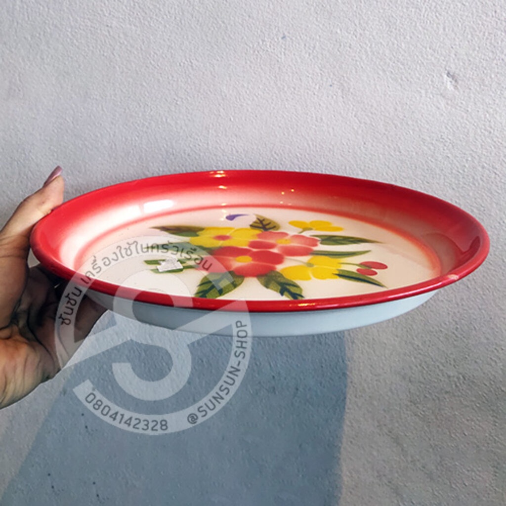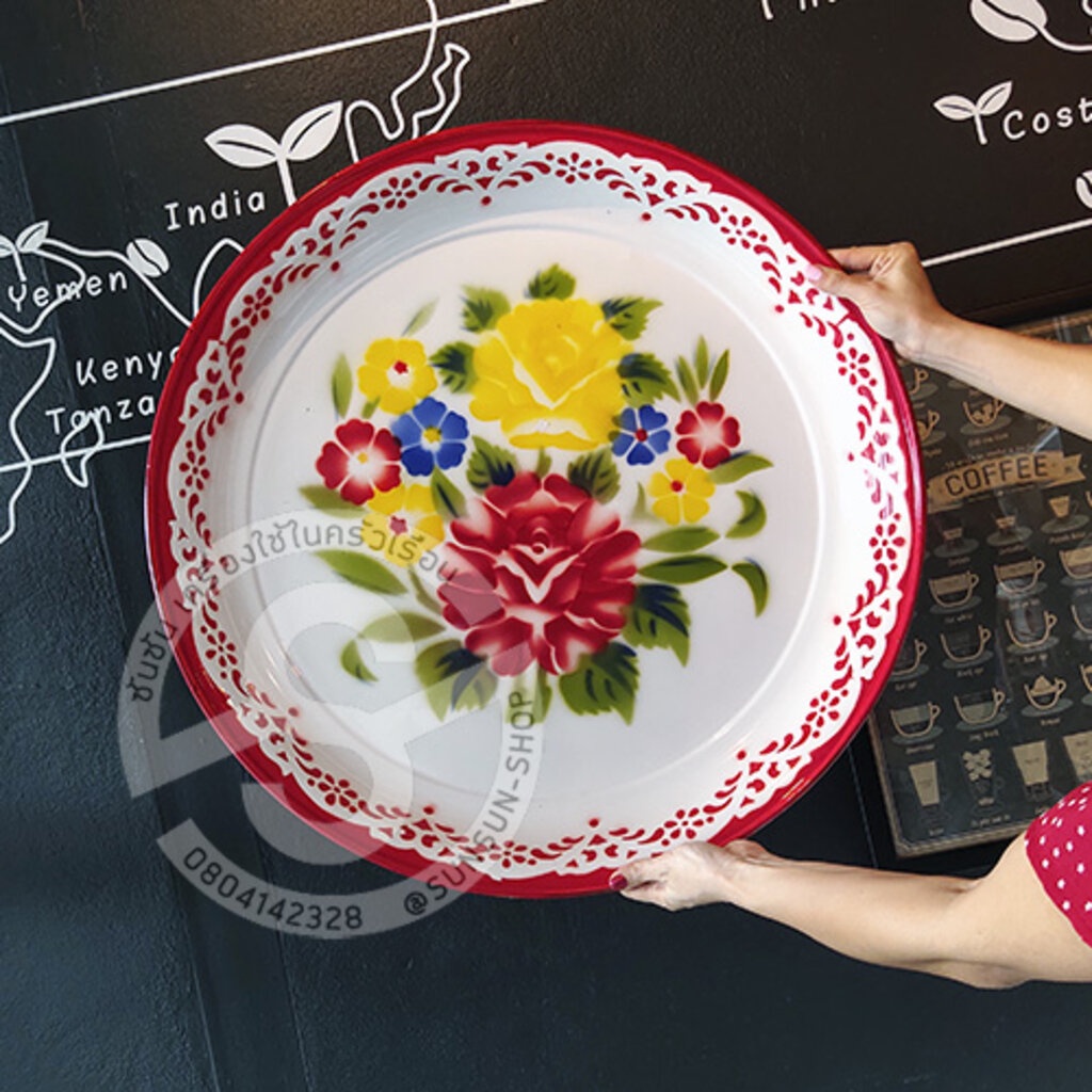 100.ถาดเคลือบ ลายดอก 22 ซม.- 60 ซม. ภาชนะเคลือบ ตรากระต่าย
