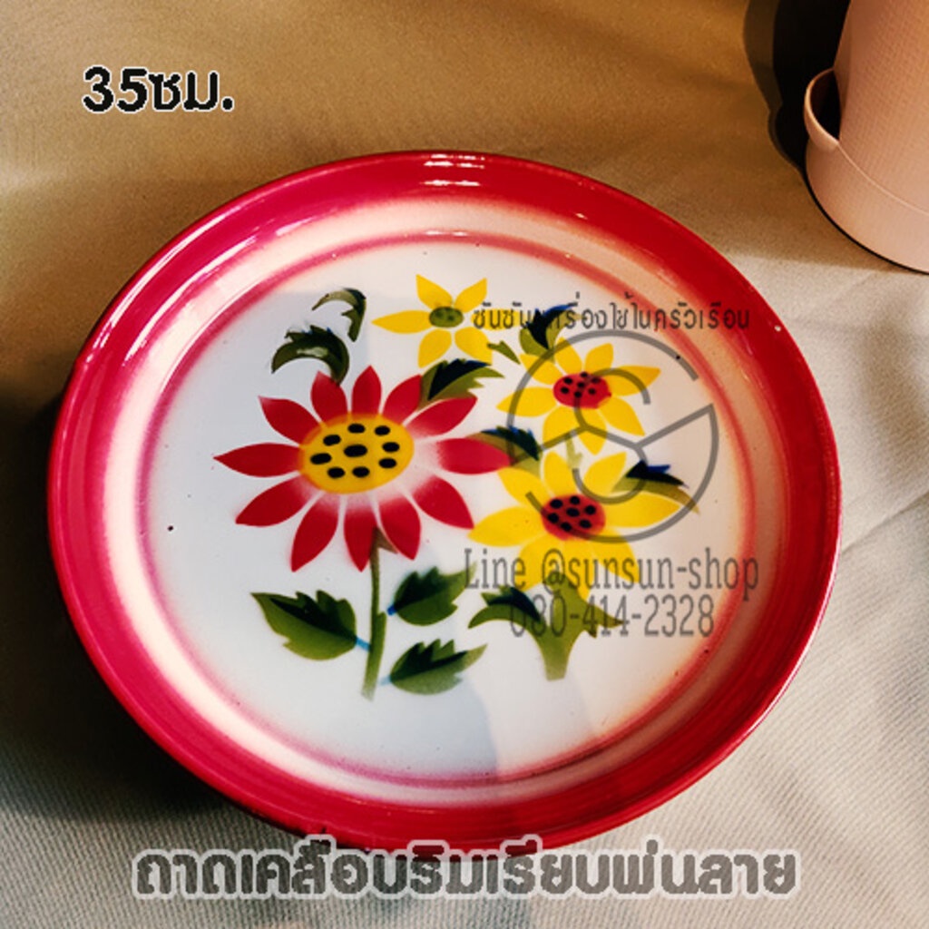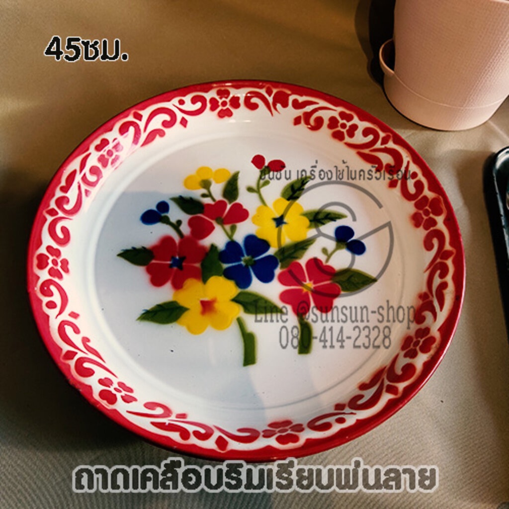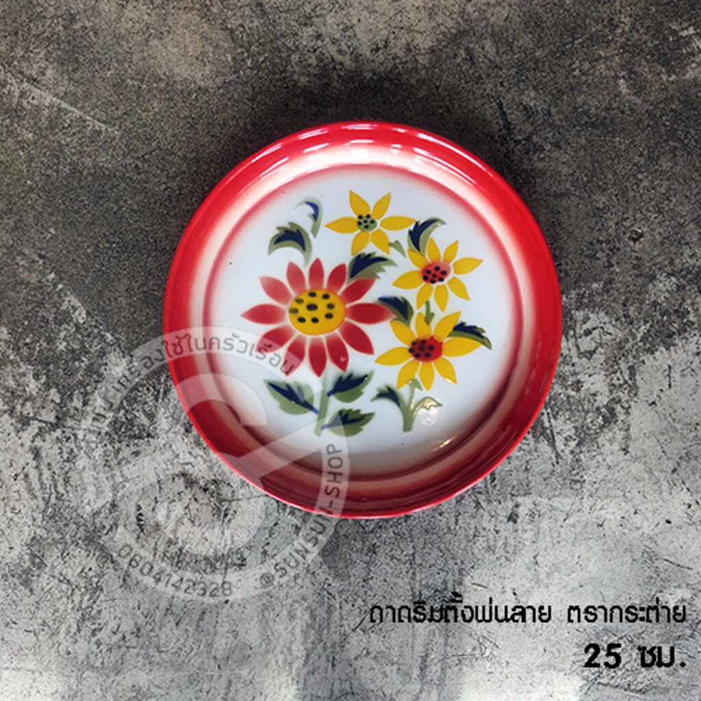 100.ถาดเคลือบ ลายดอก 22 ซม.- 60 ซม. ภาชนะเคลือบ ตรากระต่าย