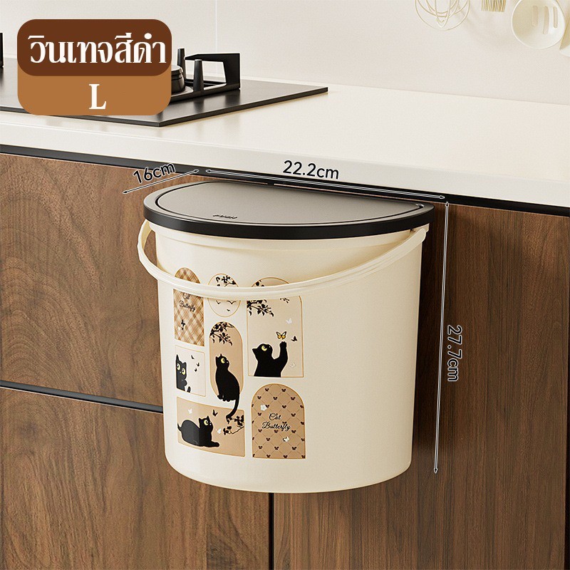 ถังขยะติดผนัง ไม่เจาะผนัง มีฝาปิดป้องกันกลิ่น 7-12ลิตร วัสดุPPแข็งแรง ทนทาน
