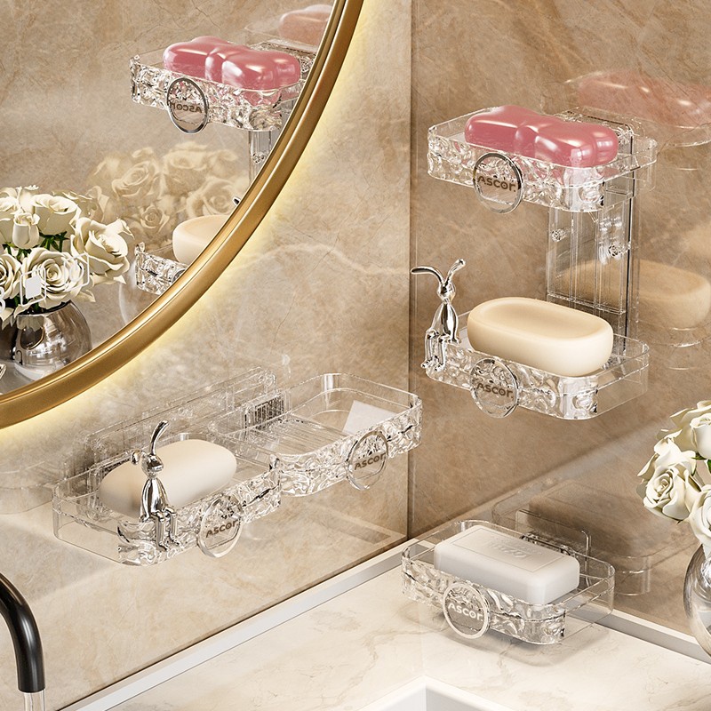 พร้อมส่ง กล่องสบู่ ติดผนัง แบบถ้วยดูด ชั้นวางสบู่ สองชั้น ไม่ต้องเจาะรู วางง่าย พร้อมจุกสุญญากาศ พลาสติก ติดผนังห้องน้ํา