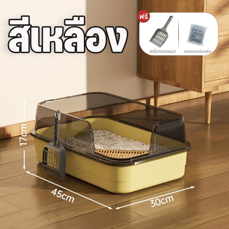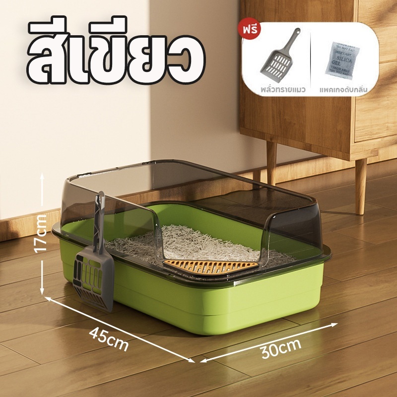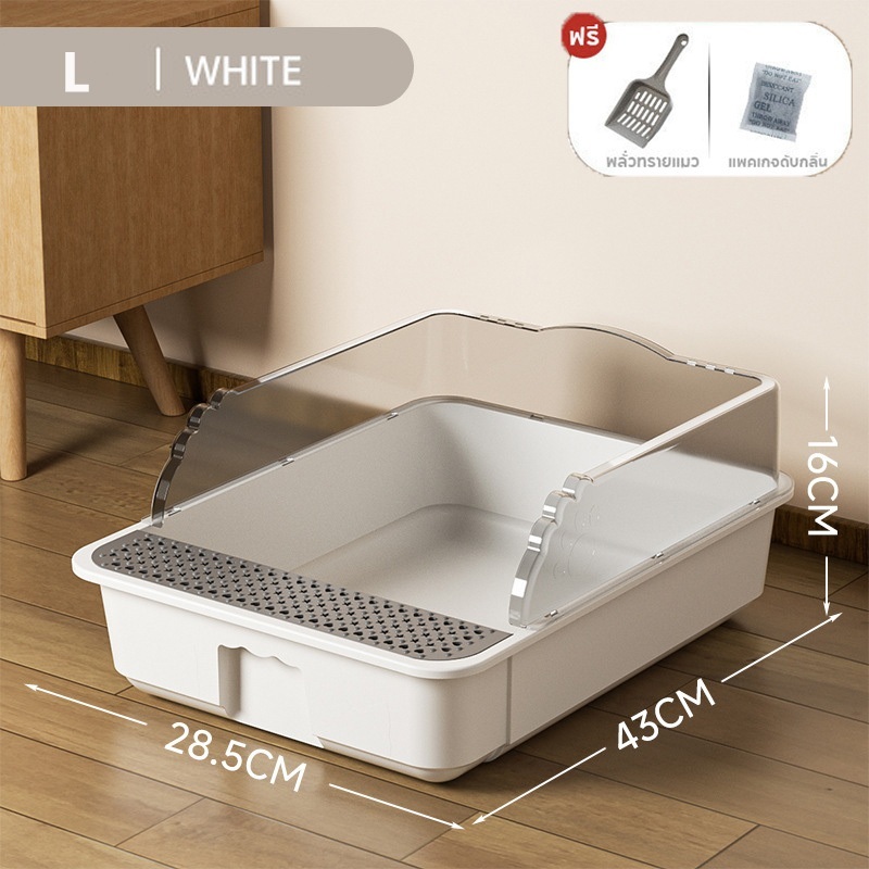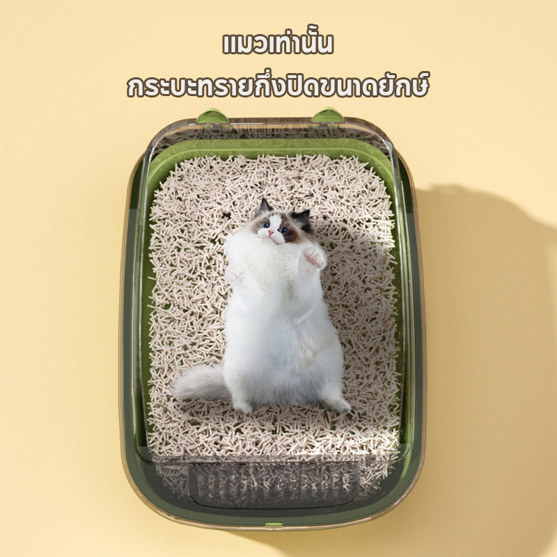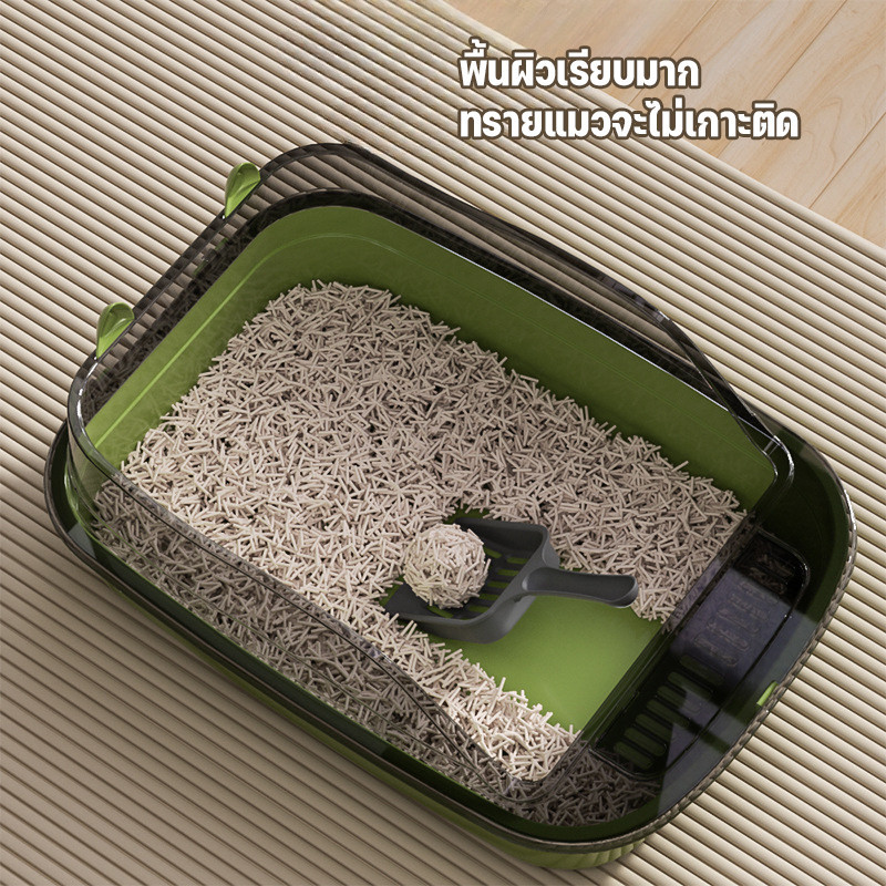 กระบะทรายแมว กระบะทราย ห้องน้ําแมว ถาดทรายแมว พร้อมที่ตักทราย ขอบสูง เขี่ยกลบทรายไม่กระเด็น