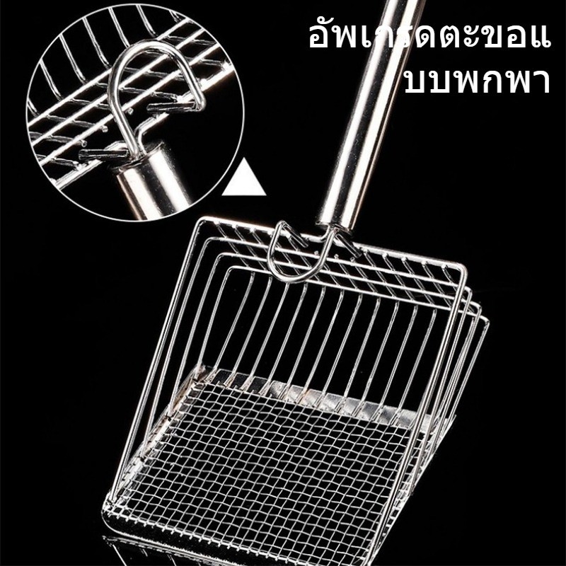 COD ไม้พายทรายแมว พลั่วขี้แมว พลั่วอุจจาระสัตว์เลี้ยง โลหะสแตนเลส ตะขอแบบพกพา ตะปุ่มตะป่ํา