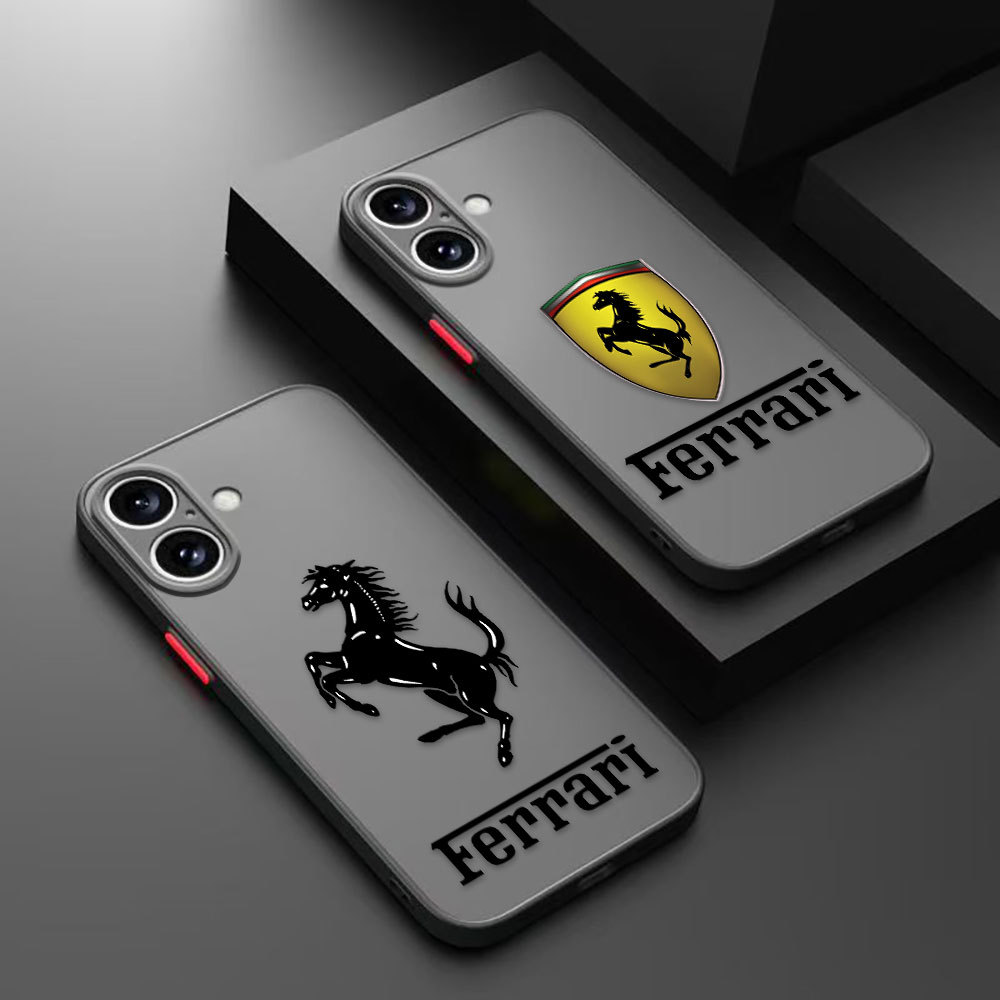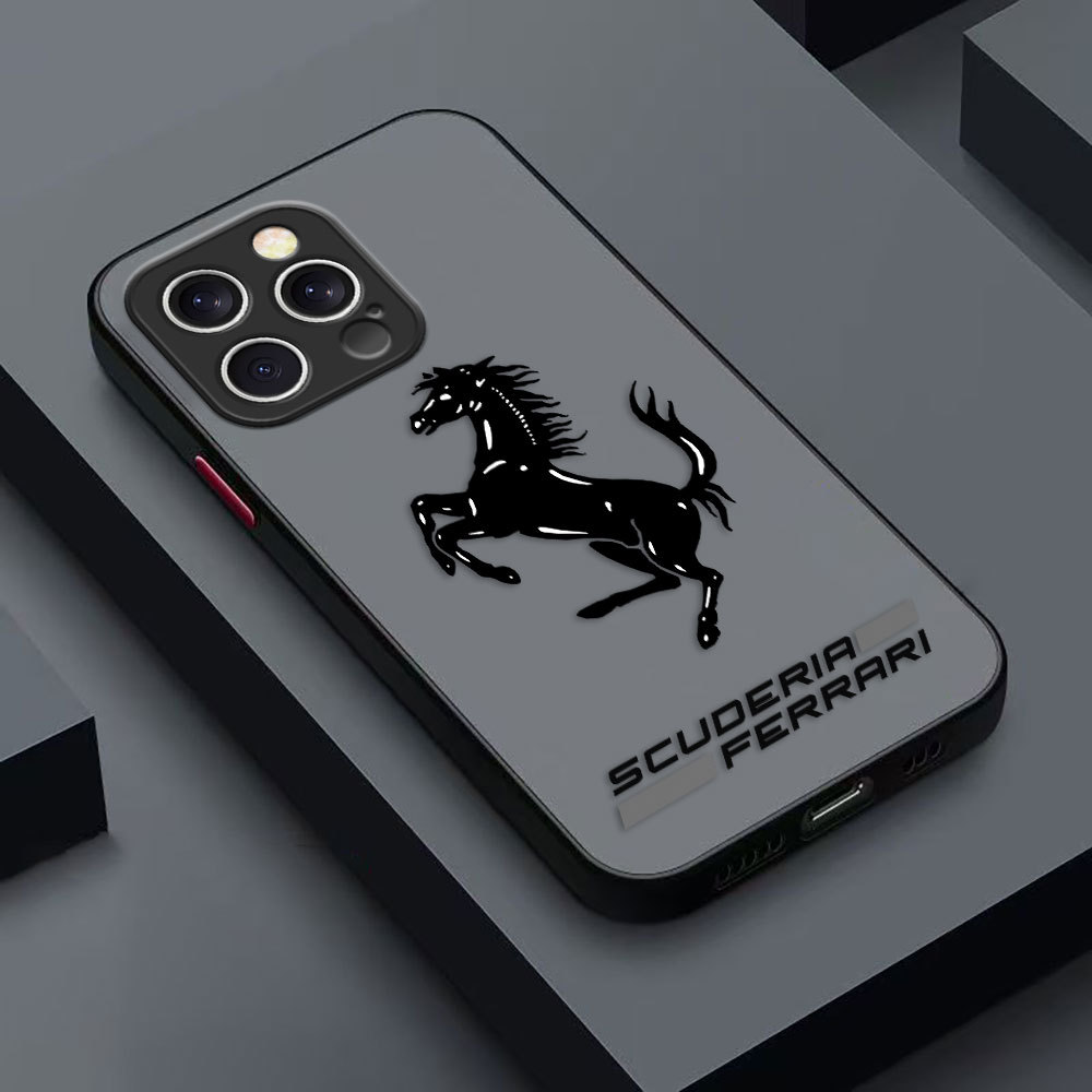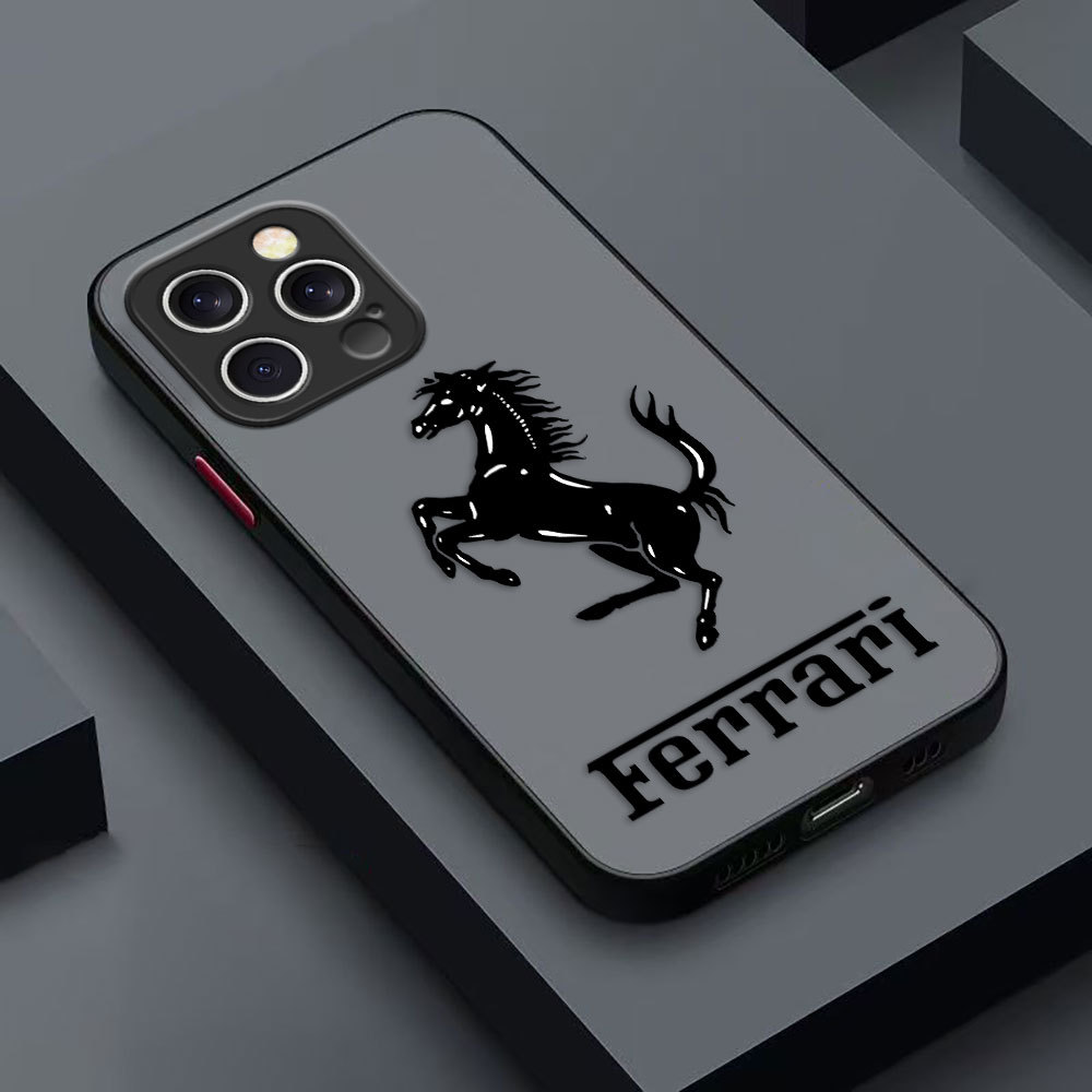 รถหรู Ferrari LOGO Cover Matte เคสโทรศัพท์สําหรับ IPHONE APPLE 12 MINI 11 XS XR X PRO MAX 7 8 SE 6 6S PLUS กรณี DIY เปลือกโทรศัพท์มือถือ