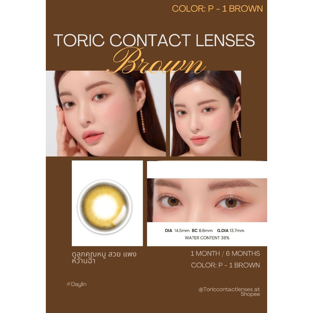 New !! ลุคสวยแพง🔥1แถม1🔥 [สั้น+เอียง+สี][สายตาเอียง][แบบสั่งตัดโดยเฉพาะบุคคล][รายเดือน][ราย 6 เดือน] คอนแทคเลนส์สี